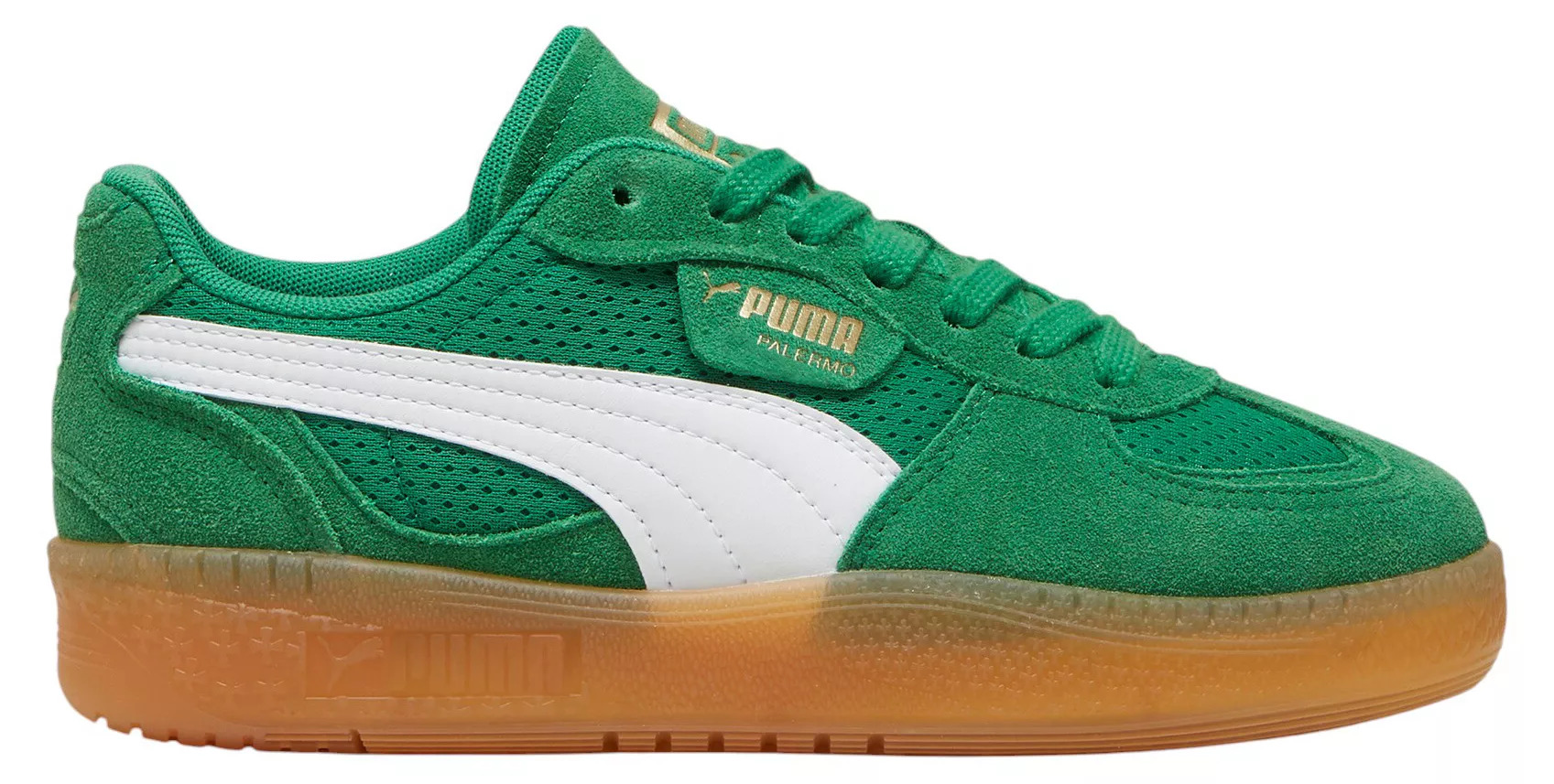 Straight from our archives, it's the PUMA Palermo. This classic terrace shoe debuted in the 80's and now, we've brought it back for the fans. With its signature T-toe construction and classic gum sole, this version features a textile upper with a synthetic PUMA Formstrip, suede overlays, and a semi-transparent rubber tooling. Design: Textile upper Suede overlays Lace closure Synthetic PUMA Formstrip PUMA branding details In-Shoe Comfort: Mesh lining Regular fit Durability & Traction: Semi-transparent rubber midsole and outsole