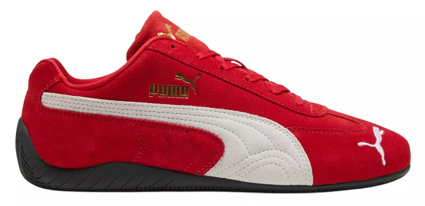 An icon of racing culture, the PUMA Speedcat has been synonymous with speed, precision, and unparalleled performance for over 25 years. It originated as a fireproof Formula 1® footwear style, but over the decades it found itself on a new circuit – transcending the tracks of Monaco for the streets of global fashion capitals. Wrapped in soft suede and premium leather, this silhouette is reissued in its original red and black colorways with a new PUMA Cat Logo at the front. Design Leather upper Suede PUMA Formstrip PUMA Cat embroidered on the toe In-Shoe Comfort IMEVA: PUMA's material for a lightweight and comfortable feel Durability & Traction Rubber midsole and outsole