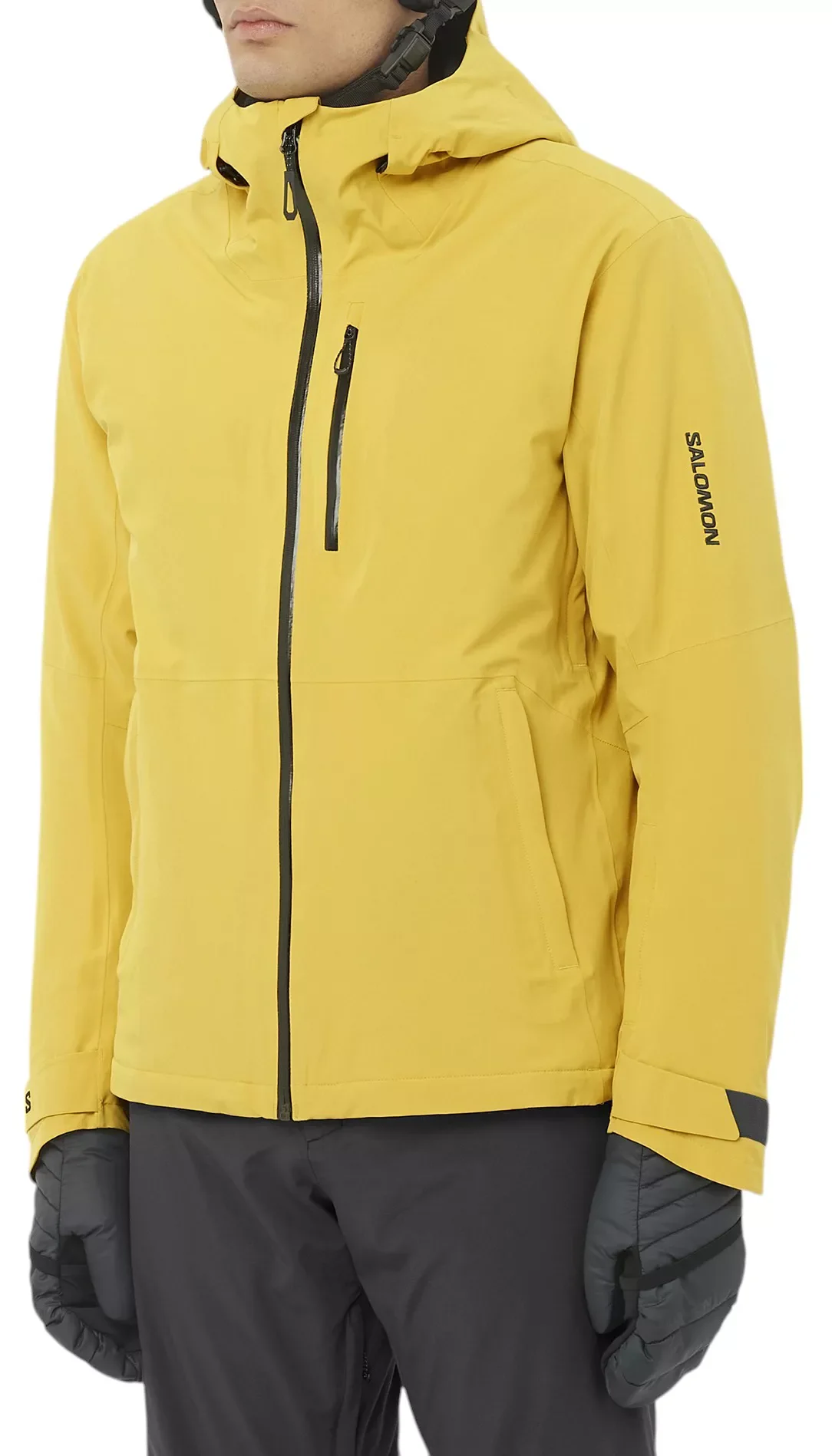 Our men's HIGHLAND jacket rolls together everything you need in the snow, from waterproof stretch fabric to cozy PrimaLoft® insulation. So, you can ride your way around the mountain feeling dry, protected and ready for anything winter throws your way. Fit & Design: Regular fit jacket On tops and bottoms, regular fit is a wider fit than slim fit, but more fitted than relaxed fit Personalize your hood to fit the height and depth of your head with cinch cord, ensuring a custom fit for maximum comfort and protection Designed to keep you dry, waterproof zippers provide a fully sealed closure, preventing water from seeping through, even in the heaviest rain 1 Large mesh a close-fitting pocket that keeps your larger items secure and easily accessible Zippered chest pocket closure to keep your must-haves secure and always within reach 2 Zipped hand pockets for protection and security, offering a comfortable space for your hands while keeping your essentials safe and within reach Built-in media pocket with a headphone slot for easy access, keeping your devices safe and your music close on every ride Convenient and functional pass pocket for effortless, hands-free scanning at the lift Velcro cuff adjustment customise the fit of your cuff in seconds, to ensure a perfect seal to keep the cold the rain or the wind out Streamlined cuff design for a snug fit around the wrist Always within reach, this built-in goggle wipe inside your chest pocket ensures clear vision by keeping your lenses clean and fog-free on the go Built-in snow skirt keeps snow out of your jacket, ensuring you stay warm and dry in any conditions Salomon air vents are designed for effortless opening to provide superior airflow, keeping you cool and comfortable during intense activity Technology: AdvancedSkin Dry 10K/10K keeps you dry and comfortable against rain, snow, and wind with 10K waterproofing and breathability PrimaLoft® 100g/m² a high-performance synthetic insulation offering exceptional warmth-to-weight ratio and loft. Retains insulating power even when wet PrimaLoft® Black Eco 100g/m² offers lightweight warmth made from recycled materials. Breathable, water-resistant, and ultra-compressible PFC-free durable water-repellent finish keeps you dry while reducing environmental impact Additional Details: Weight: 950 g Wash with like colours Cool iron Do not bleach Do not dry clean Machine wash cold (30°c) Tumble dry low Do not use fabric softener Remove immediately