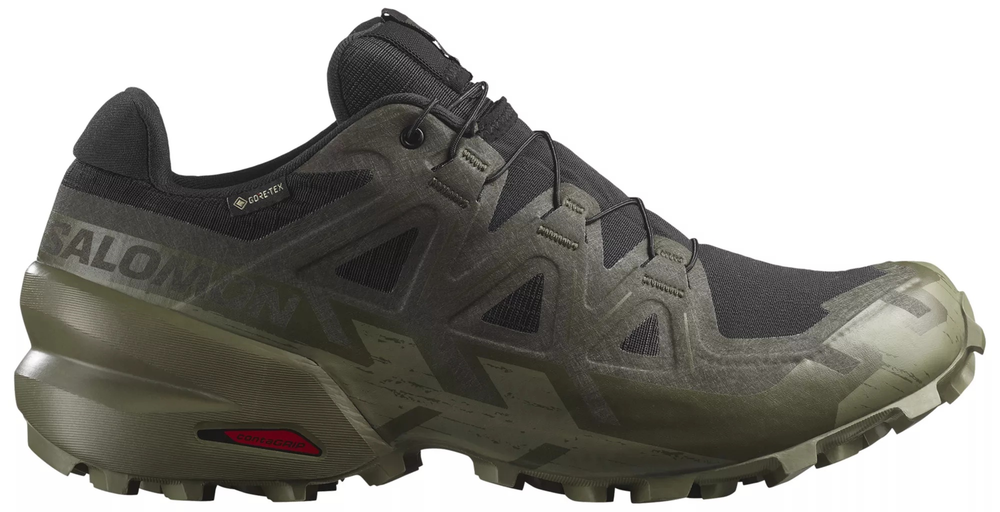 Design: Foot-hugging upper ensures a comfortable and secure fit GORE-TEX keeps your feet dry from the outside as well as from the inside Materials made from recycled products such as PET bottles or material waste Quicklace® lacing system In-Shoe Comfort: Sensifit construction offers precise, optimal foothold and classic Speedcross comfort EnergyCell+™ high-rebound midsole compound provides exceptional energy return along with substantial cushioning and durability Durability & Traction: Mud Contagrip® outsole built for maximum grip on loose, soft, rugged, and uneven surfaces Mud Contagrip® uses sharp lugs made from a compound that focuses on adhesion