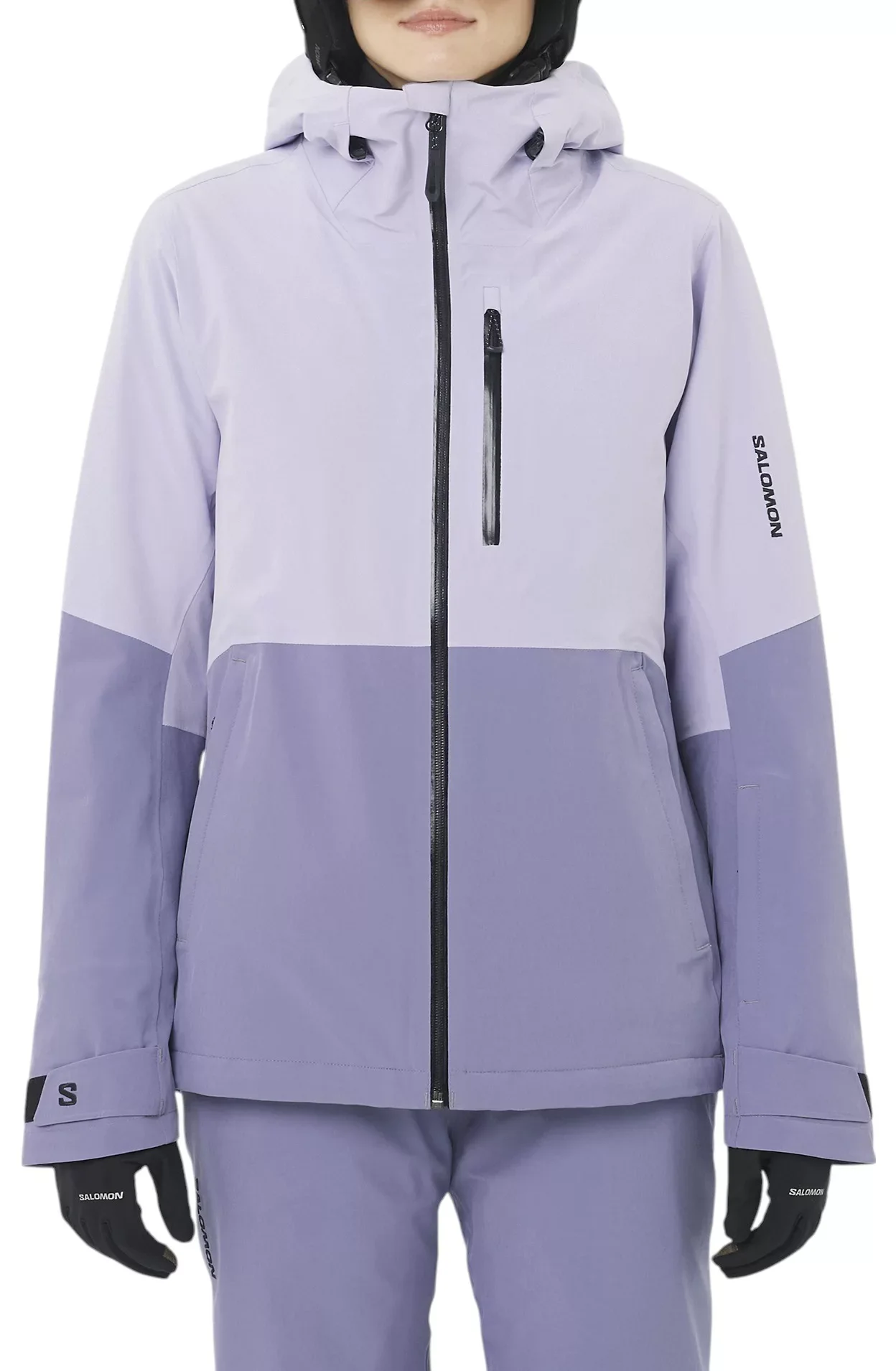 Our women's HIGHLAND jacket rolls together everything you need in the snow, from waterproof stretch fabric to cozy PrimaLoft® insulation. So, you can ride your way around the mountain feeling dry, protected and ready for anything winter throws your way. Fit & Design: Regular fit jacket On tops and bottoms, regular fit is a wider fit than slim fit, but more fitted than relaxed fit Personalize your hood to fit the height and depth of your head with cinch cord, ensuring a custom fit for maximum comfort and protection Designed to keep you dry, waterproof zippers provide a fully sealed closure, preventing water from seeping through, even in the heaviest rain Customise the fit of your cuff in seconds, to ensure a perfect seal to keep the cold the rain or the wind out Streamlined cuff design for a snug fit around the wrist 1 Internal pocket secure, discreet pocket inside the garment or within another pocket to keep your essentials safe and easily accessible 1 Large mesh close-fitting pocket that keeps your larger items secure and easily accessible Zippered chest pocket to keep your must-haves secure and always within reach 2 Zipped hand pockets for protection and security, offering a comfortable space for your hands while keeping your essentials safe and within reach Convenient and functional pass pocket for effortless, hands-free scanning at the lift Built-in goggle wipe inside your chest pocket ensures clear vision by keeping your lenses clean and fog-free on the go Built-in snow skirt keeps snow out of your jacket, ensuring you stay warm and dry in any conditions Salomon air vents are designed for effortless opening to provide superior airflow, keeping you cool and comfortable during intense activity Technology: AdvancedSkin Dry 10K/10K keeps you dry and comfortable against rain, snow, and wind with 10K waterproofing and breathability PrimaLoft® 100g/m² high-performance synthetic insulation offering exceptional warmth-to-weight ratio and loft Additional Details: Weight: 850 g Wash with like colours Cool iron Do not bleach Do not dry clean Machine wash cold (30°c) Tumble dry low Do not use fabric softener Remove immediately