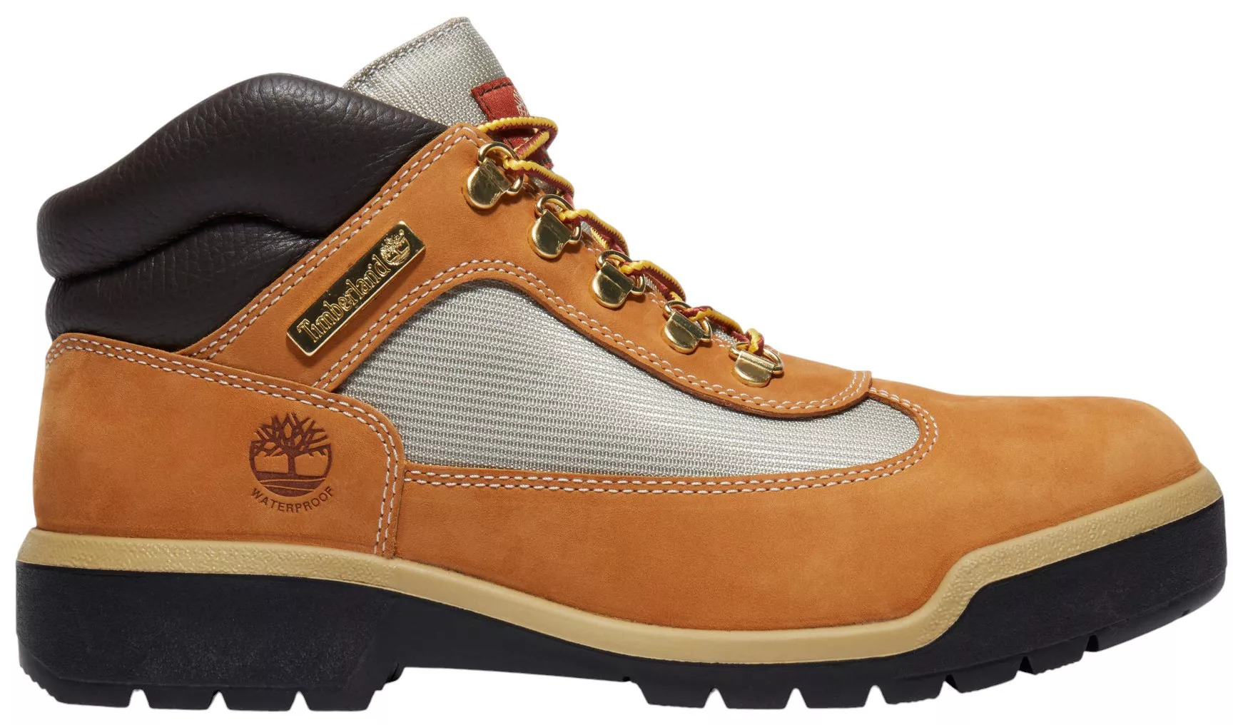 Help get ready for the outdoors with our Men's Waterproof Field Boot that features Premium Timberland® leather upper and TimberDry™ waterproof lining. The ReBOTL™ material that contains at least 50% recycled PET plastic, a padded collar, and an anti-fatigue footbed all help you stay comfortable. The PrimaLoft® insulation helps you stay warm when you most need it. By purchasing this product, you are supporting Leather Working Group certified tanneries. DESIGN: Upper made with waterproof Premium Timberland® leather and mesh fabric Fiberglass shank for arch support ReBOTL™ fabric lining containing at least 50% recycled plastic D-ring lacing system 200 grams of PrimaLoft® insulation Padded collar Anti-fatigue removable footbed