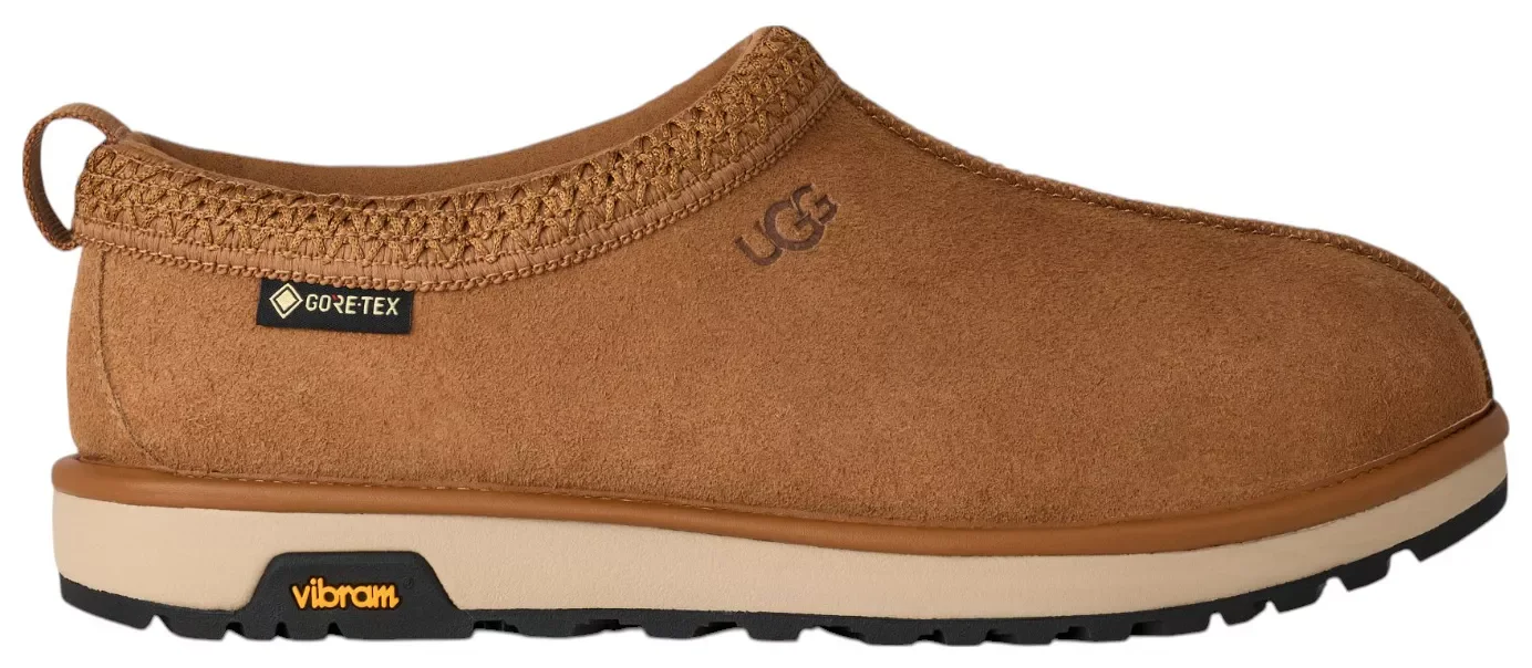 Introducing our Tasman GTX — because we want you to be able to wear your Tasman's everywhere. This new weather-ready rendition is built with waterproof suede and features an internal GORE-TEX membrane. The interior features the same UGGplush™ lining and insole you love, while the sugarcane EVA midsole has been finished with a Vibram® outsole for added durability and traction. Design: Waterproof suede GORE-TEX membrane bootie construction Rear pull tab 17mm UGGplush™ 60% upcycled wool, 40% TENCEL™ Lyocell lining Sugarcane EVA outsole Vibram® outsole GORE-TEX woven label