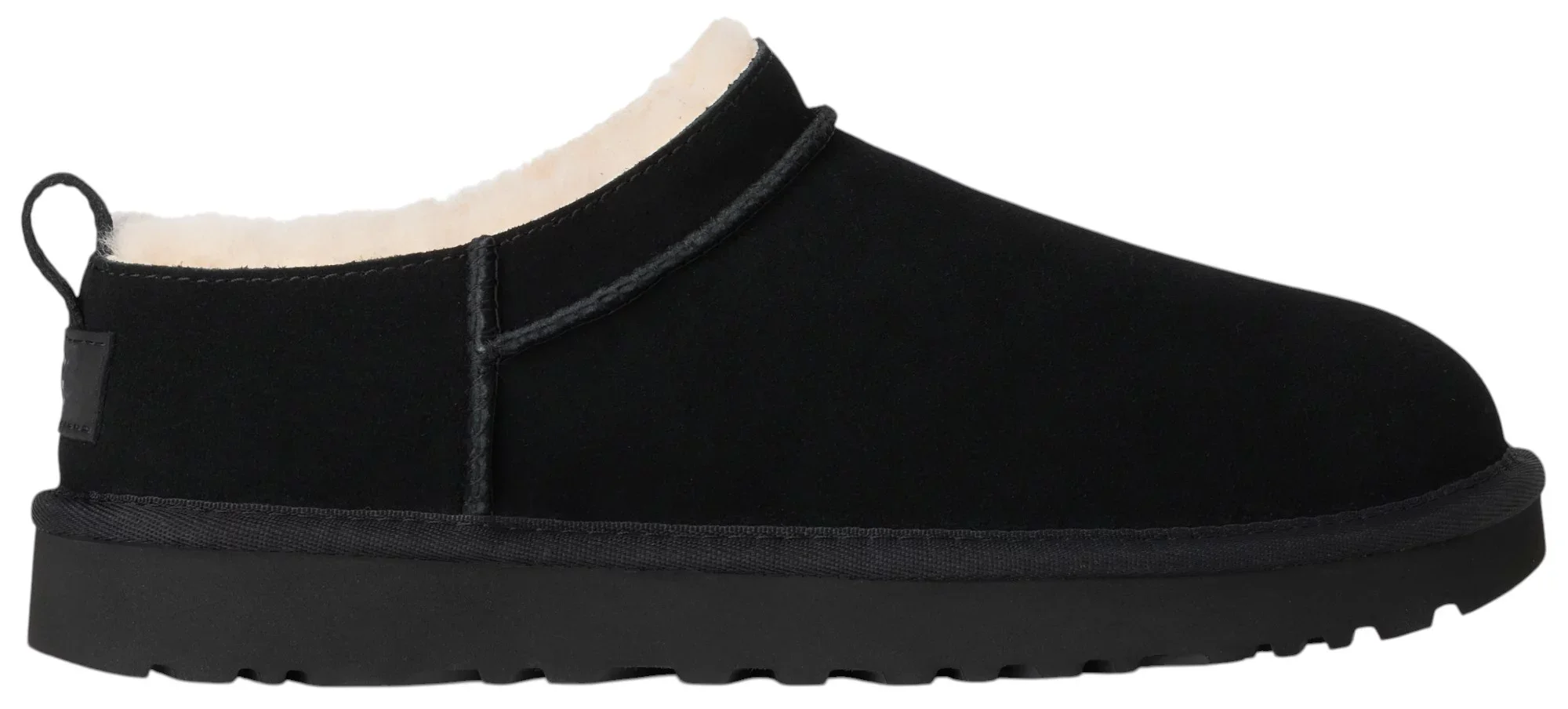 Our Classic Micro reimagines our fan-favorite Classic Boot with a new, low-profile design (and high-profile comfort). It has a genuine suede upper lined with mega-soft sheepskin that naturally regulates temperature, so you can wear socks — or not. The lightweight sugarcane EVA outsole delivers effortless support and adds that easy slipper feeling to every out-of-the-house venture. Design: Suede with topically applied water repellency treatment or Water-resistant suede upper Rear pull tab 10mm sheepskin shaft lining, 17mm sheepskin vamp lining 17mm sheepskin insole Textile binding made from 100% recycled polyester fibers Woven label with The UGG® Logo on insole, The UGG® Logo embossed leather heel label This product contains real fur from sheep or lamb. Fur may be sourced from Australia, Ireland, the United Kingdom, or the United States. It has been artificially dyed and treated.