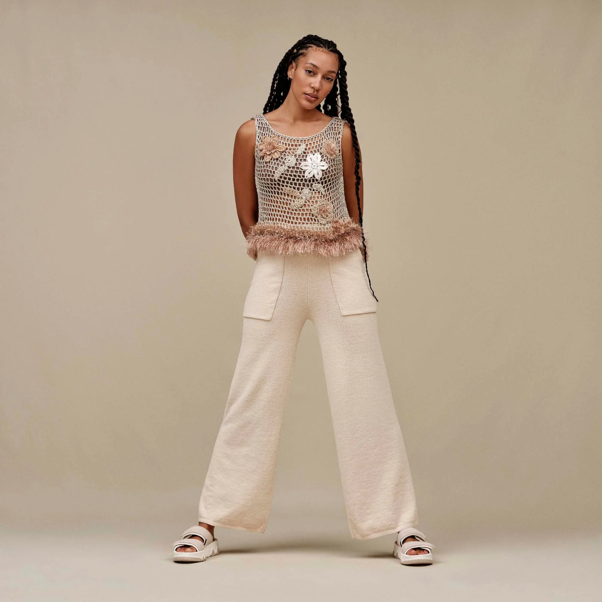 We've got something oh-so-special for you. We know you love UGG’s Cozy Knit material. Question: Want to be light and free for these warmer months? Well, they made Cozy Knit breezier. Lighter. Cooler. The Rosalie Pant Lite is destined for chill nights and catching flights with UGG’s Cozy Knit Lite fabrication from 100% recycled polyester. Designed with a wide leg, high waist, and front patch pockets. Fit & Design: Mid-rise classic-fit wide-leg lightweight pant Front patch pockets High waisted Encased elasticized waistband The UGG® Logo tonal woven flag label Printed The UGG® Logo clamp label on wearer's left pocket opening Additional Details: This product was made in a factory that supports women in our supply chain with the help of Reimagining Industry to Support Equality (RISE). This collaborative initiative creates partnerships with brands like ours to empower and educate women in the workplace.