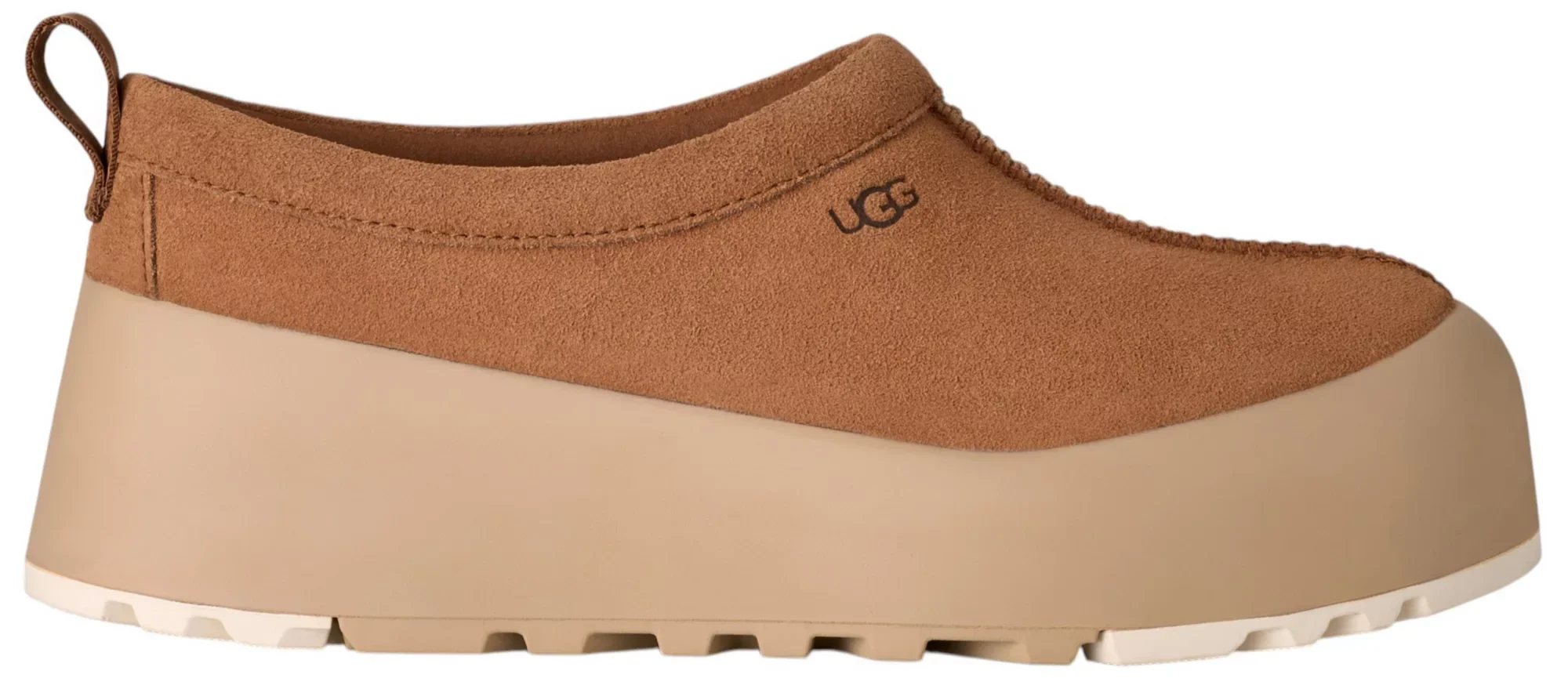 Our classic Tasman has gained a new perspective with our Tasman StreetScape. Designed for daily self-expression, the Tasman StreetScape features a contrasting wrapped outsole with a matching rear pull tab. We've included The Feel of UGG® with our signature UGGplush™ lining and genuine water-resistant suede upper. Due to the nature of the wrapped outsole, slight variations make each pair unique. This product was made in a factory that supports women in our supply chain with the help of Reimagining Industry to Support Equality (RISE). This collaborative initiative creates partnerships with brands like ours to empower and educate women in the workplace. Design: Protected: Waterproof or Water-Resistant Materials Water-resistant suede Rear pull tab, Suede heel counter 10mm UGGplush™ 60% upcycled wool, 40% TENCEL™ Lyocell vamp lining, 10mm UGGplush™ 60% upcycled wool, 40% TENCEL™ Lyocell shaft lining 17mm UGGplush™ 60% upcycled wool, 40% TENCEL™ Lyocell sockliner Textile binding made from 100% recycled polyester fibers PU outsole The UGG® Logo, heat-embossed, Woven label with The UGG® Logo on insole