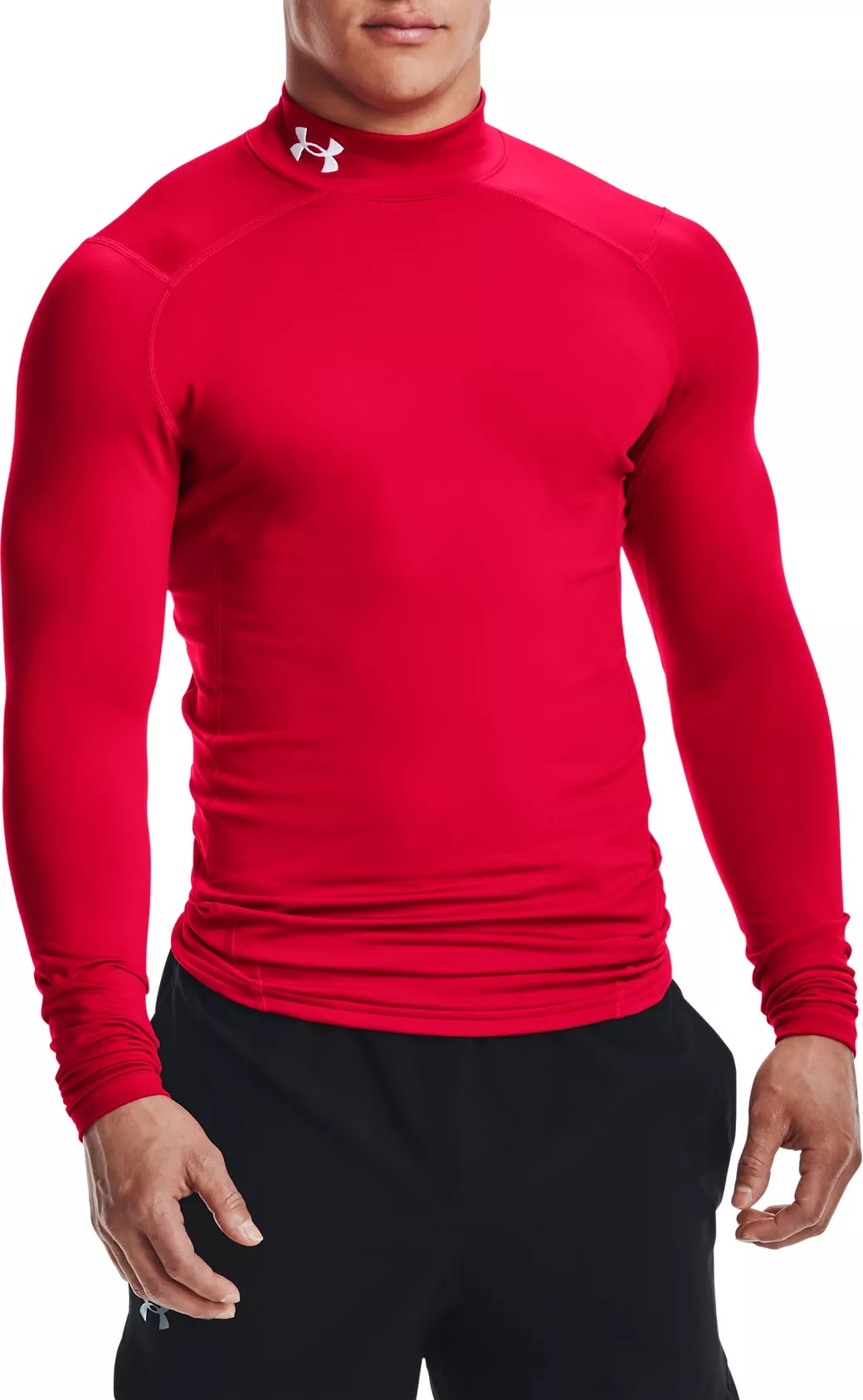 Fit & Design: Compression fit long sleeve shirt Mock neck construction for added coverage and warmth 4-way stretch construction moves better in every direction Dual-layer fabric with an ultra-warm, brushed interior and a smooth, fast-drying exterior Stretch-mesh back and underarm panels provide strategic ventilation without sacrificing warmth Ergonomic design keeps seams off high abrasion areas Under Armour® logo on right side of neck Technology: Moisture wicking material wicks away sweat and dries quickly Anti-odor technology prevents the growth of odor-causing microbes Additional Details: Machine wash cold with like colors Use only non-chlorine bleach when needed Do not iron Do not use softeners Do not dry clean