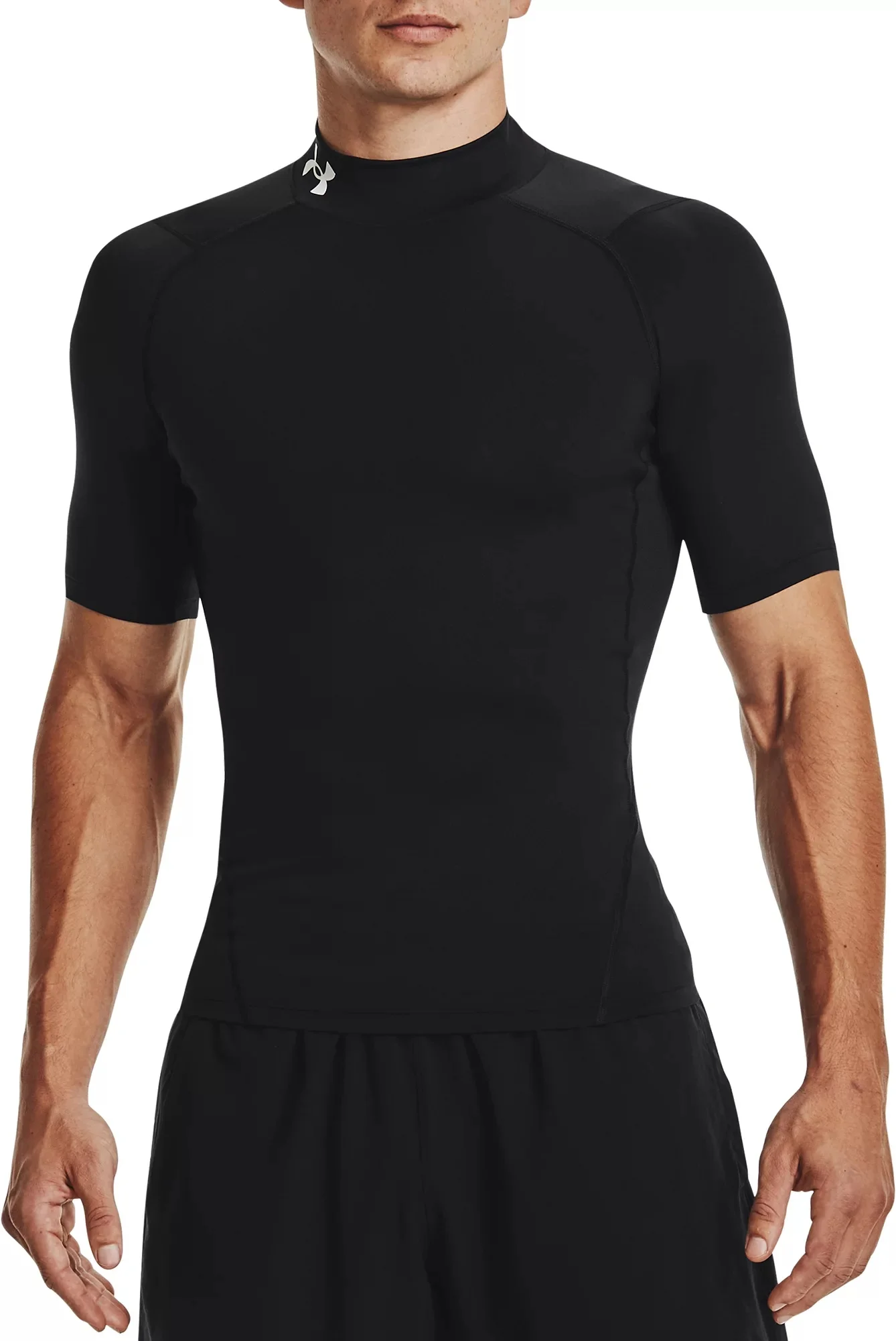 Fit & Design: Tight fit compression shirt Second-skin fit forms to your body 4-way stretch fabric moves with you effortlessly Mesh underarm and back panels provide strategic ventilation Ergonomic design keeps seams off high abrasion areas and increases durability Mock neckline offers added coverage Hybrid raglan sleeves enhance range of motion and comfort Write-in locker tag on back of neck lets you write your initials or number Technology: HeatGear® fabric wicks away sweat and dries quickly to keep you dry and comfortable Additional Details: Care instructions: Machine wash cold, inside out with like colors; use only non-chlorine bleach; tumble dry low; do not iron, use softeners, or dry clean