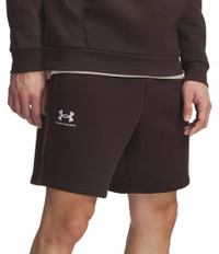 Under Armour Men's Icon Fleece Shorts are designed for fitness enthusiasts seeking comfort and style. Featuring an ultra-soft cotton-blend fleece with a brushed inside for extra warmth and open hand pockets, they offer a loose, fuller cut for complete ease of movement. An encased elastic waistband with an external drawcord ensures a secure fit, making them perfect for both outdoor activities and casual wear. Fit & Design Open hand pockets Inseam: 6.625 in. Pockets: Yes Loose: Fuller cut for complete comfort. Additional Details: 80% Cotton, 20% Polyester Imported Machine wash cold with like colors