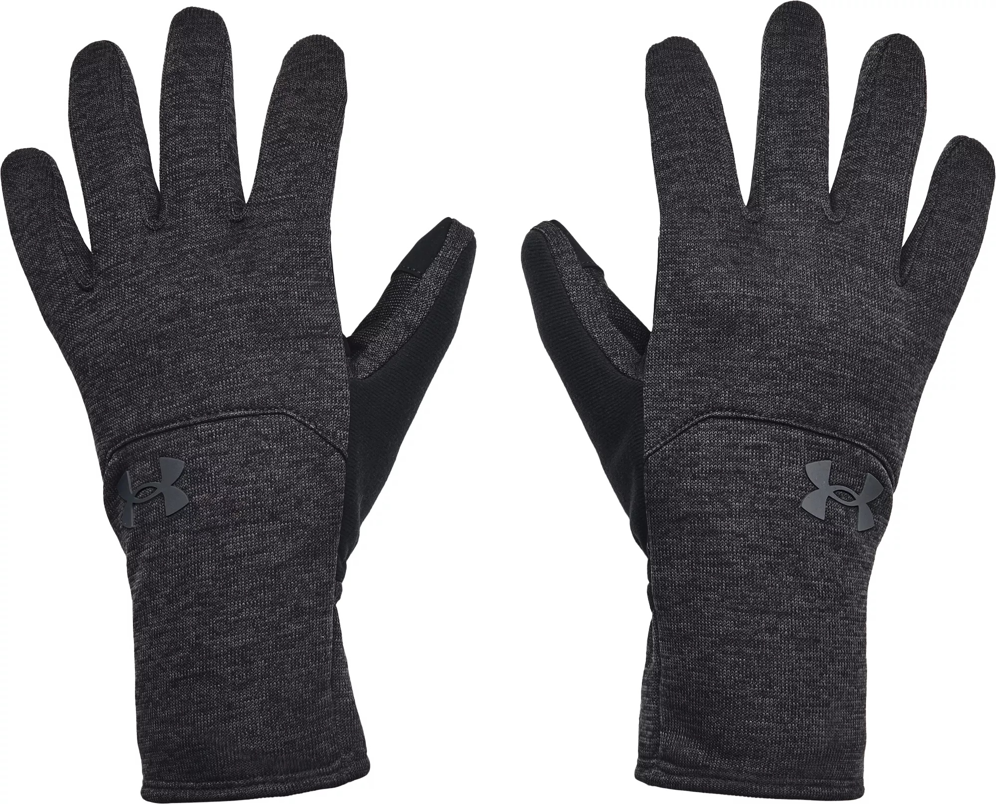 Fit and Design: Regular fit gloves Soft sweater-fleece exterior fabric features a heathered look Brushed Armour Fleece® interior lining traps heat to keep you warm and comfortable Extra soft Speedwipe™ fleece on back of thumb Microfiber palm pad delivers added grip and durability Extended wrist cuff offers added coverage and warmth Technology: UA Storm technology repels water without sacrificing breathability Conductive suede tips on thumb and index finger enable you to use touchscreen devices without taking your gloves off Additional Details: Machine wash cold with like colors Do not bleach Do not iron Do not use softeners Do not dry clean