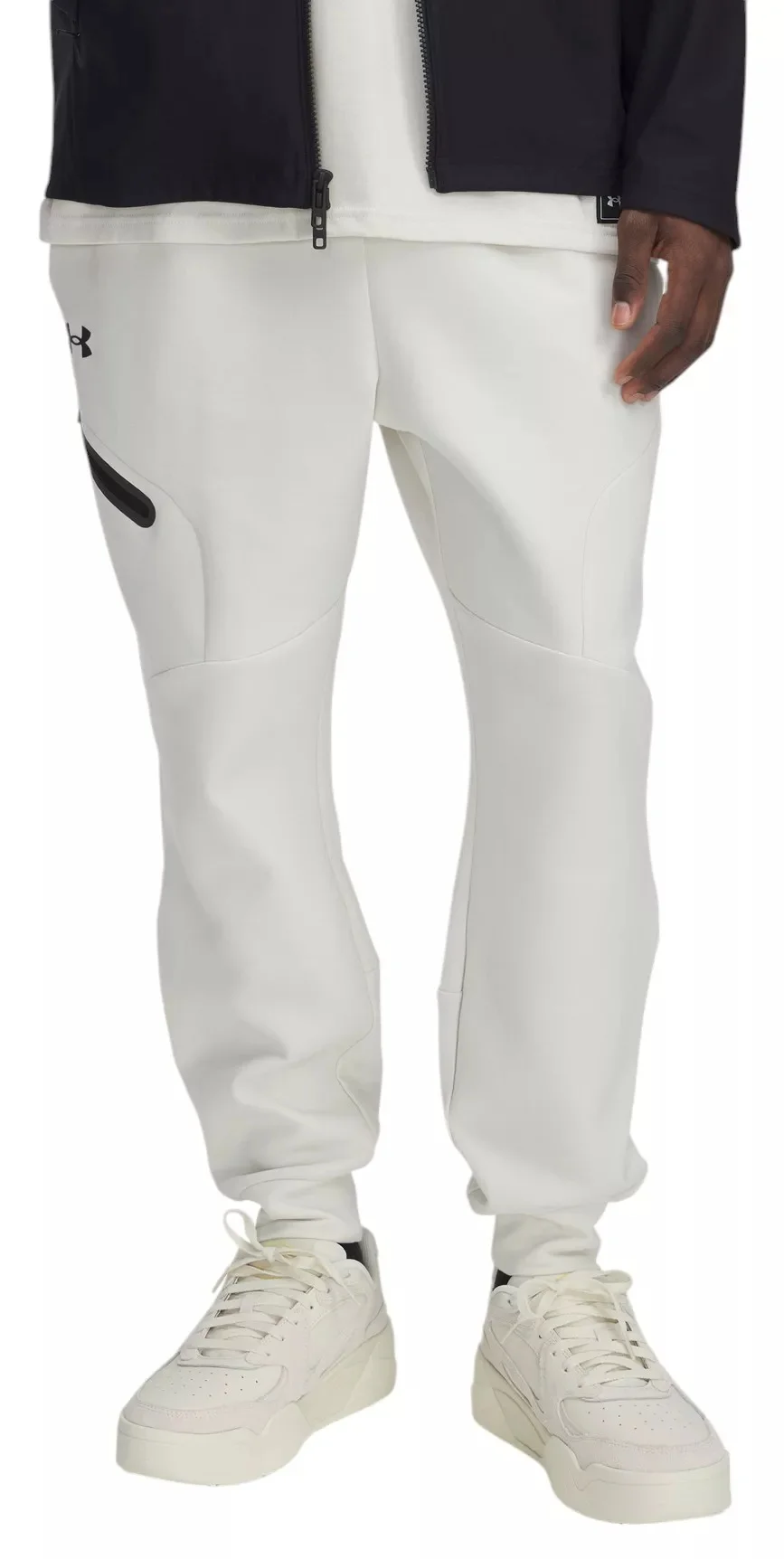 Stay comfortable and stylish during your workouts with the Under Armour Men's Unstoppable Fleece Joggers. These joggers feature ultra-comfortable fabric that wicks sweat and dries quickly, with a tough yet lightweight construction that moves effortlessly in every direction. With a tapered leg fit and a modern look, they are perfect for any fitness enthusiast. Stay comfortable and stylish during your workouts with the Under Armour Men's Unstoppable fleece joggers. These joggers feature ultra-comfortable fabric that wicks sweat and dries quickly, with a tough yet lightweight construction that moves effortlessly in every direction. With convenient pockets and a tapered leg fit, they provide both functionality and a modern look, making them perfect for any fitness enthusiast. Fit & Design Material wicks sweat & dries really fast Encased elastic waistband with internal drawcord adjust Open hand pockets & bonded, secure zip back pocket Exposed elastic cuffs Inseam: 29.75 in. Fitted: Streamlined fit that’s not too tight or too loose. Tapered leg fit Technology: UA Storm technology repels water without sacrificing breathability Additional Details: 87% Polyester/13% Elastane Imported Machine wash cold with like colors