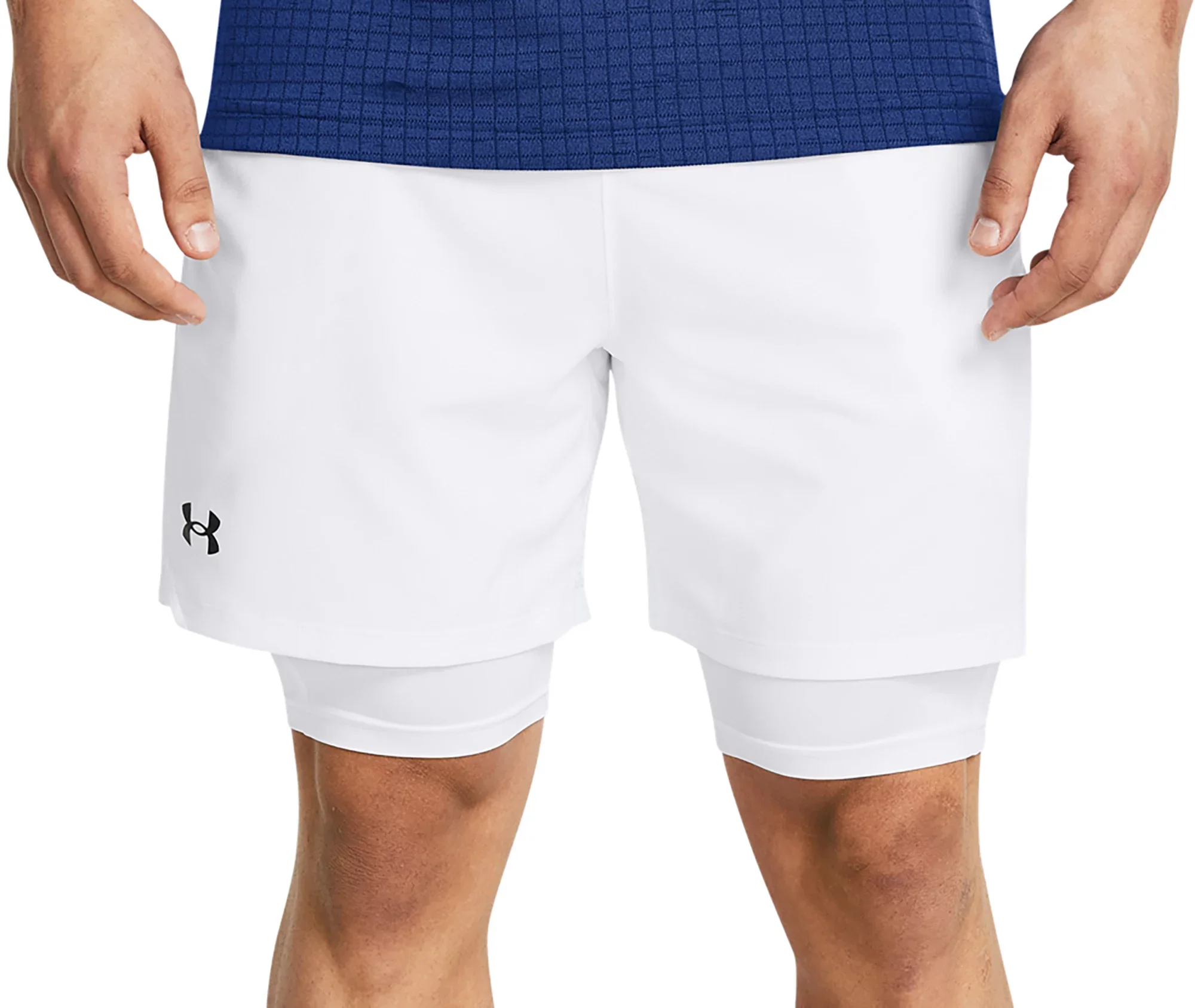 Experience unmatched performance with the Under Armour Men's Vanish Woven 2-in-1 Shorts. Designed for the most intense workouts, these shorts feature ultra-lightweight, durable woven fabric and built-in knit compression shorts for relentless coverage and support. With perforated woven panels for added ventilation and material that wicks sweat and dries quickly, you'll stay cool and dry no matter how hard you train. Fit & Design: Tight Fit Ultra-lightweight, durable woven fabric is built for the most intense workouts Built-in knit compression shorts for relentless coverage & support Perforated woven panels on outer shorts for added ventilation Material wicks sweat & dries really fast 4-way stretch material moves better in every direction Halfback exposed waistband with wordmark detail in the back & internal drawcord Open hand pockets