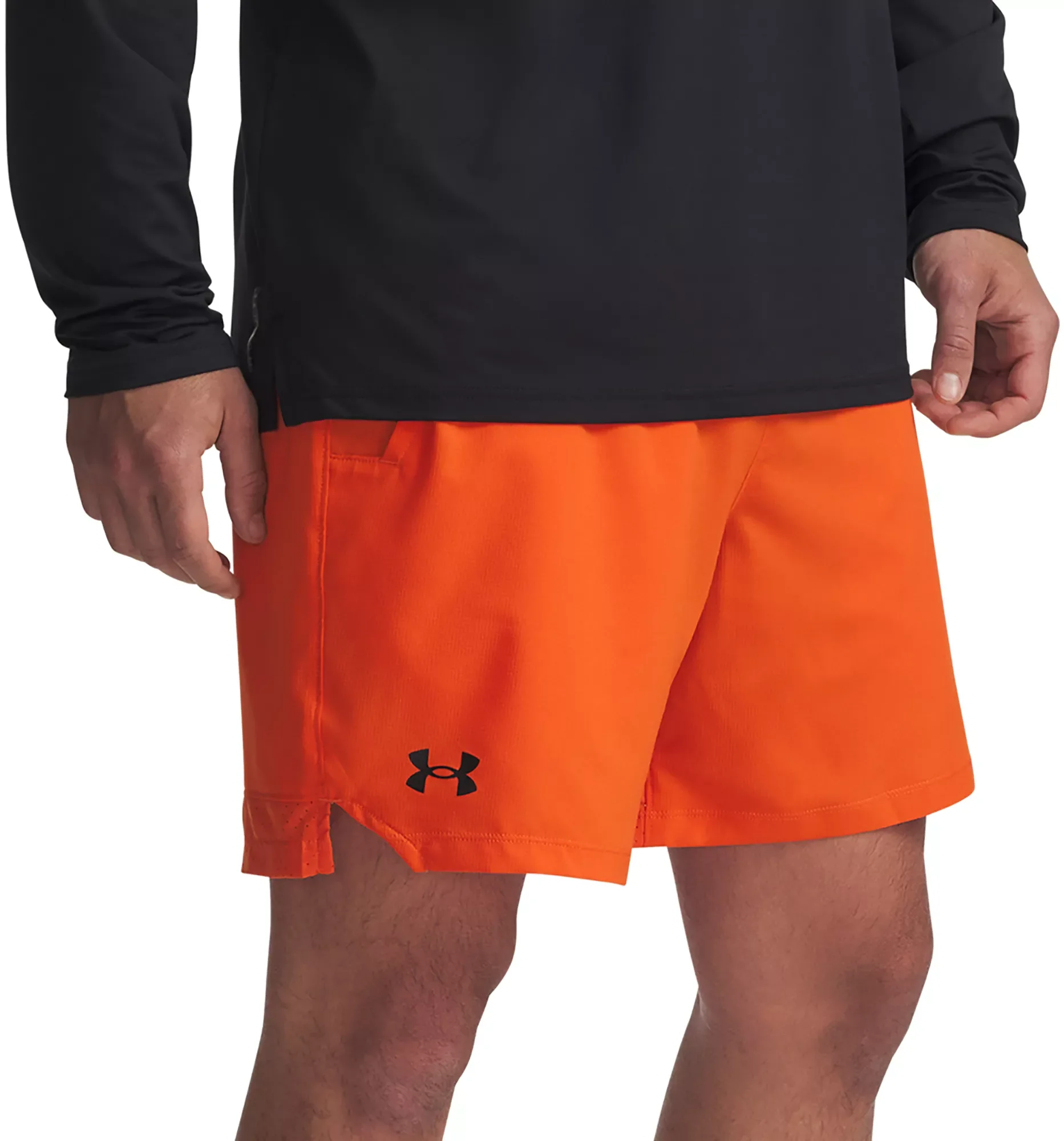 Conquer your toughest workouts with the Under Armour Men’s Vanish Woven 6" Shorts. Designed with ultra-lightweight, durable woven fabric, these shorts offer 4-way stretch and strategic mesh ventilation for optimal mobility and breathability. The moisture-wicking Vanish fabric keeps you dry and comfortable, while the half-back exposed elastic waistband ensures a secure and comfortable fit. Fit & Design: Regular fit shorts Ultra-lightweight, durable woven fabric is built for the most intense workouts 4-way stretch material moves better in every direction Mesh panels implement strategic ventilation to keep you feeling fresh Half-back exposed elastic waistband offers a comfortable fit Open hand pockets provide a convenient place to stash your essentials No liner Technology: Moisture-wicking Vanish fabric dries impressively fast Additional Details: Inseam: 6" Machine wash cold with like colors Tumble dry low Use only non-chlorine bleach when needed Do not iron Do not use softeners Do not dry clean