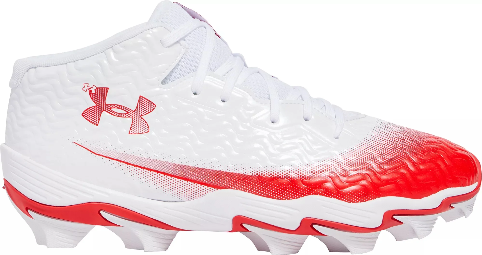 Design: Lightweight, durable upper with raised 3D print for added toe protection when battling in the trenches Textile collar for added comfort and breathability with a durable suede heel > In-Shoe Comfort: Full length Charged Cushioning® midsole for superior underfoot comfort High-rebound SuperFoam® insole provides optimal shock absorption and comfort Traction & Durability: Molded TPU plate features a wider foundation and diamond shaped studs for powerful, supportive traction