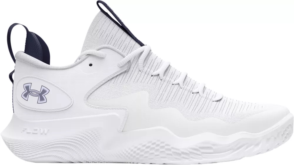 Design: UA IntelliKnit upper is breathable and comfortable with dynamic compression for stretch and support where needed Integrated Pebax® shank provides midfoot stability Standard lace closure provides a secure fit In-Shoe Comfort: Molded heel and plush collar foam provides enhanced lockdown and comfort Bootie design with molded collar provides incredible fit and anatomically correct support Women's-specific sockliner for added underfoot comfort New UA Flow cushioning technology is super-light, bouncy, and provides insane grip Durability & Traction: Rubber-printed toe for added abrasion resistance Durable UA Flow outsole provides better court feel so you can cut and stop/start faster than ever before