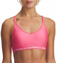 Unique crossback strap design delivers extra support in all the right places but still staying incredibly comfortable. Fit & Design: Compression: Ultra-tight, second-skin fit Built for light-support activity & all-day comfort Removable cups for enhanced shape & coverage Mesh panels at front neckline & lower bust for added breathability Quick & easy adjusts on front of straps for a custom fit Deep V neckline & exposed elastic bottom band with wordmark detail Technology: HeatGear® fabric delivers superior next-to-skin feel, wicks sweat & dries fast Odor control technology minimizes odor