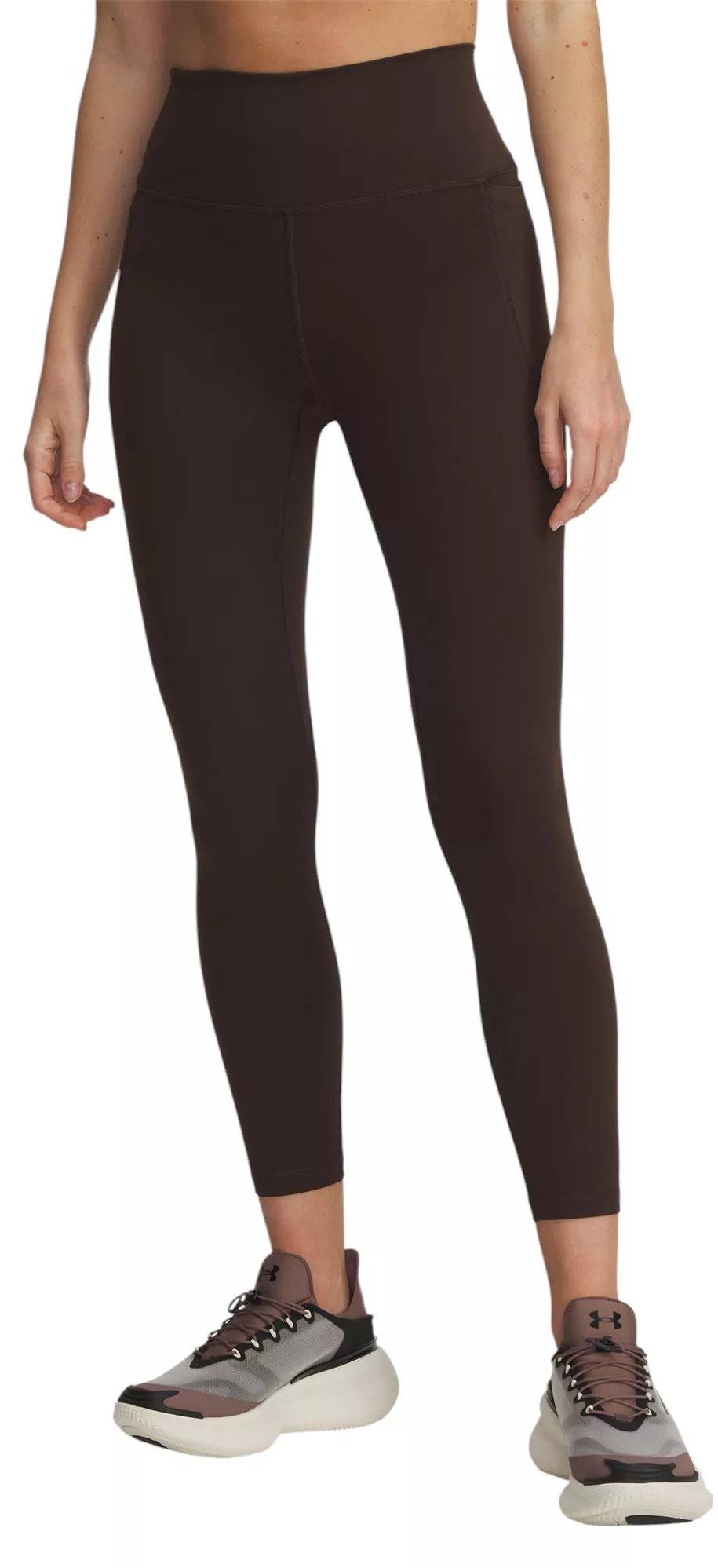 Crazy soft and flattering. UA took their favorite leggings and made them even better—we're talking softer and more durable than ever before, sculpting your body in all the right places. You'll literally wear them everywhere. Fit & Design: Super-soft & stretchy performance knit fabric delivers support & lasting comfort with improved durability Shaped, high-rise waistband with updated design for improved fit & feel Updated gusset design provides ultimate comfort & reduces friction points 2 side drop-in pockets with updated size & shape for optimal functionality LYCRA® ADAPTIV fiber maintains softness even as it stretches for unparalleled comfort through every move Material wicks sweat & dries really fast Fitted: Streamlined fit that’s not too tight or too loose Inseam: 26"