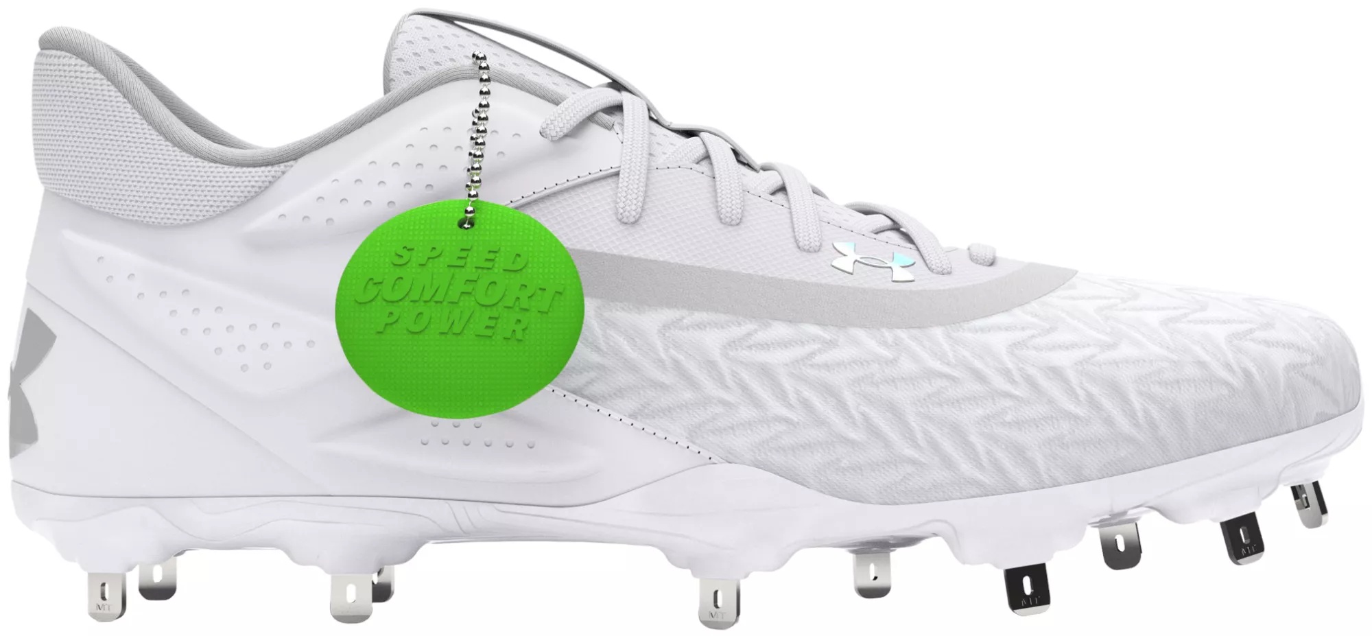 Design: UA Clone upper provides a truly customized fit, no matter your foot size Flexible auxetic material molds around the foot for a precise, glove-like fit and feel that's truly customized to every foot Cleat shield helps eliminate underfoot pressure In-Shoe Comfort: Strategically placed, responsive UA HOVR™ cushioning provides maximum energy return and comfort Durability & Traction: New UA Microtips are stronger, lighter and shorter for closer ground contact 10 strategically placed cleats on perimeter for more points of ground contact to reduce cleat pressure Additional Details: Weight: 13.2 oz.