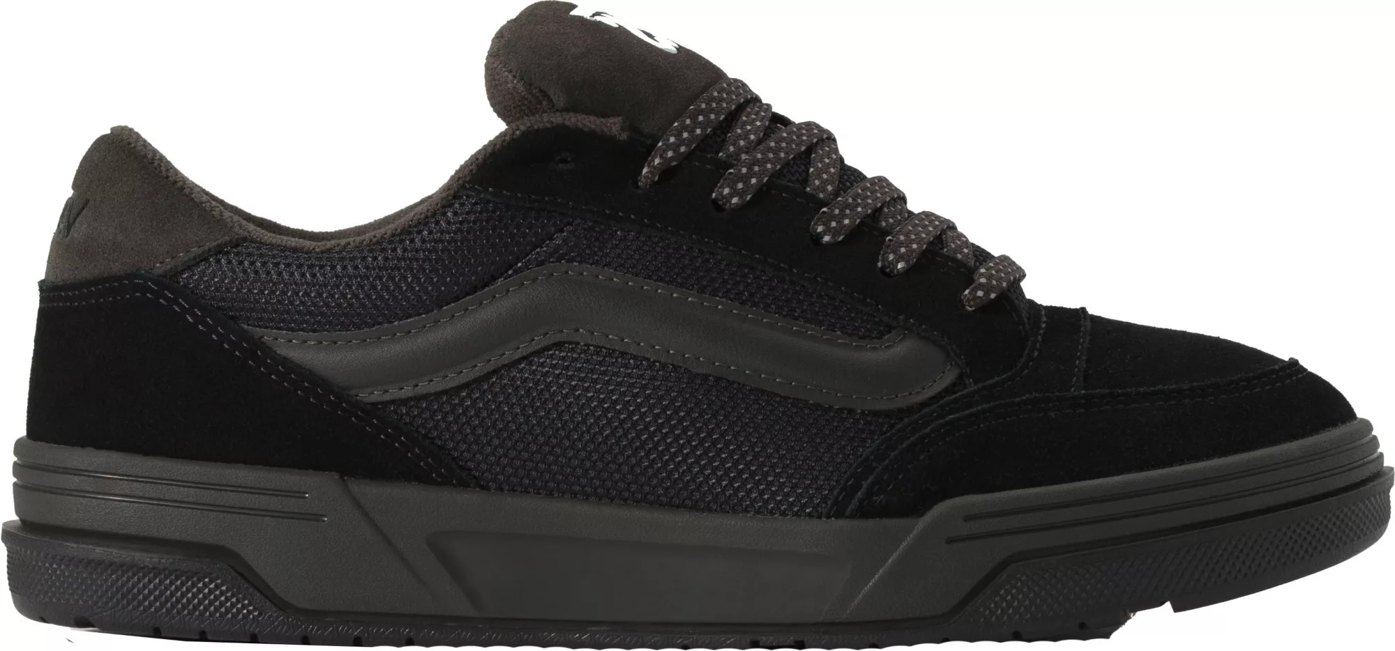 Design: Hylane is a Y2K skate-inspired shoe that reinterprets our Upland silhouette from 1999 Elevated design details like the 3D glossed Sidestripe and embroidered logos Chunky stance and puffy skate tongue provide a retro look and feel TLeather and synthetic uppers Chunky sidewall design with compression channel In-Shoe Comfort: Puffy Y2K skate tongue Durability and Traction: Finished with a cupsole construction and a unique interlocking V texture Reverse waffle outsole with oversized Vans logo and flex grooves