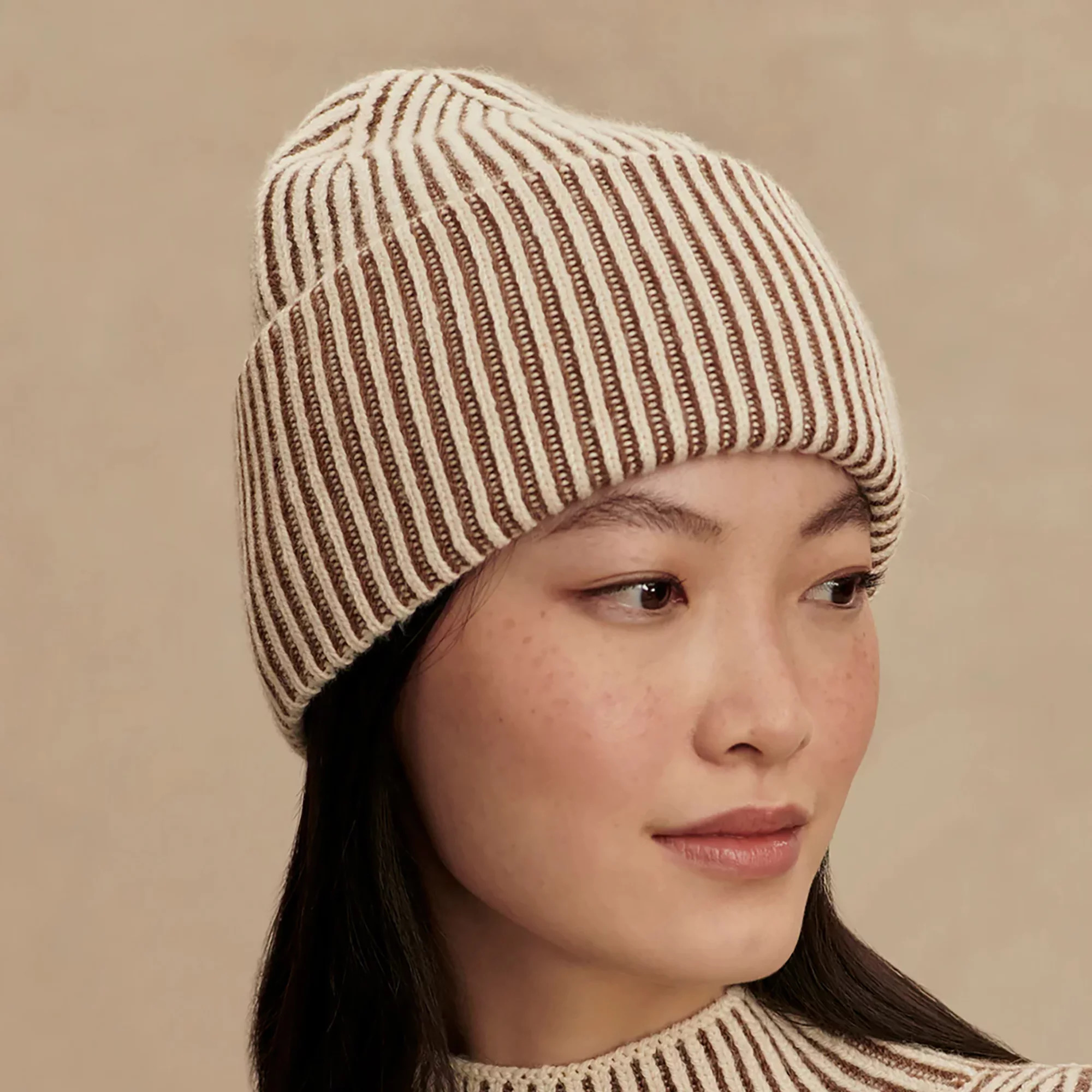 Designed to keep you stylish and warm, the Dionne is made to match the Deville scarf. Fit & Design: Crafted from an Alpaca blend yarn with all-over rib stitching and tonal plating Featuring a deep turn-back and a fashioning rib detail at the top Additional Details 65% Acrylic 18% Nylon 10% Alpaca 7% Polyester Delicate dry clean only. add pilling/snagging and fibre shedding warning label. remove any naturally occurring pilling by brushing gently with a knitwear comb or using a fabric shaver. Hat Length: 16.5". Turn-Up Hem Depth: 4.5"
