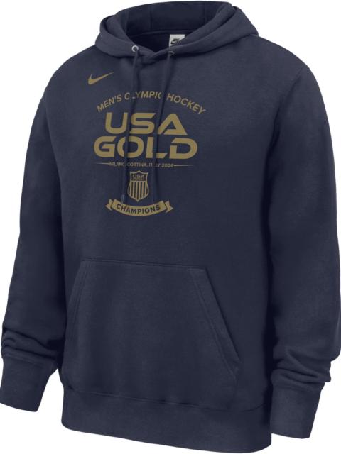 Nike Adult Team USA 2026 Men's Ice Hockey Gold Medal Winner Navy Club Fleece Pullover Hoodie