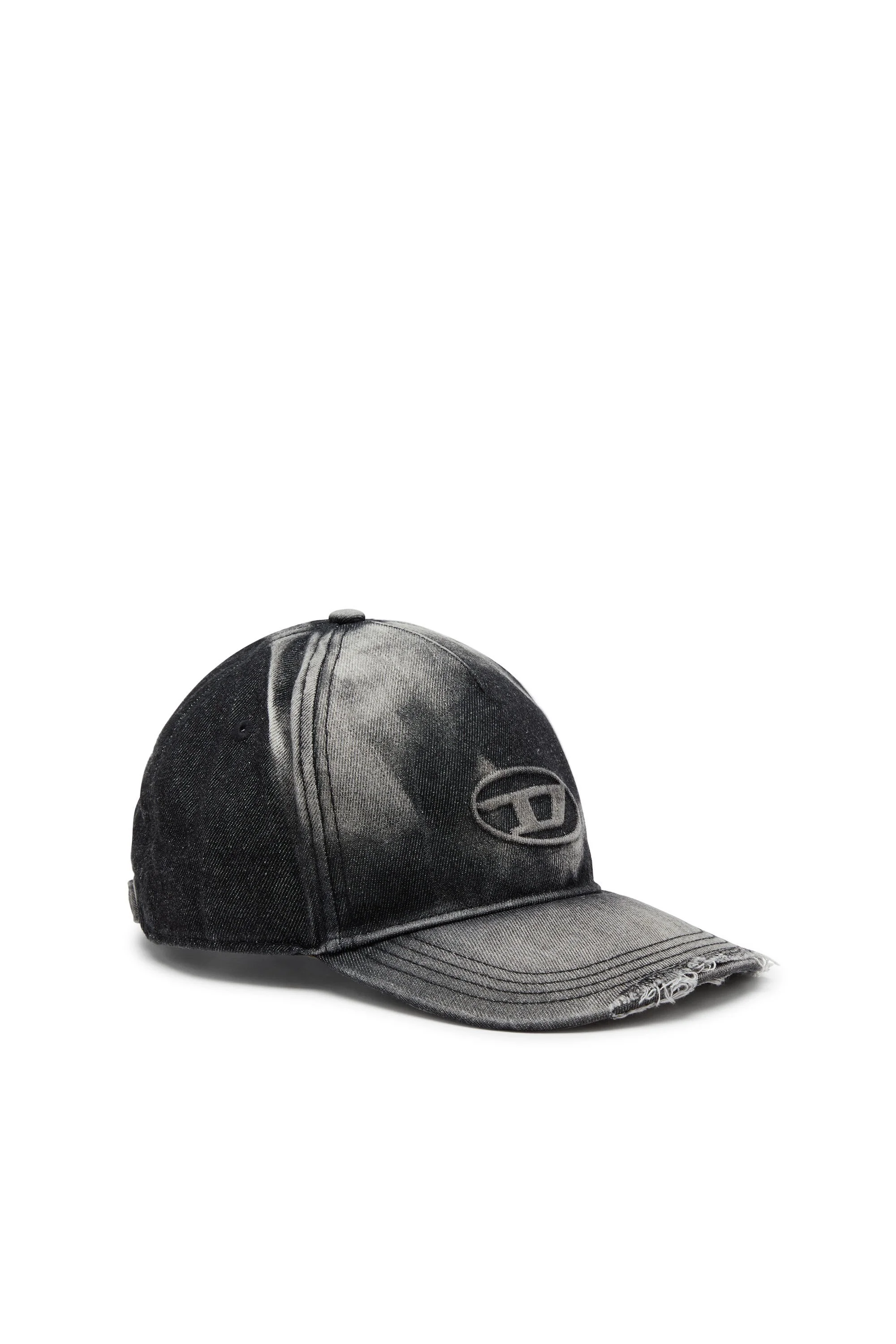 Product Description This men's five-panel baseball cap is made from black denim with a heavily destroyed treatment and contrast-colour stitching. A large embossed Oval D logo decorates the front. ID: A197770DGAV Materials & Details Composition: 100%Cotton Adjustable back tab