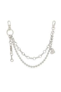 Product Description Metal charm composed of multi-layer chains in different styles, featuring a heart-shaped pendant and logo lettering. Complete with snap hooks and a key ring for versatile attachment to bags or accessories. ID: X10799P9132 Materials & Details Composition: 60%Zinc 30%Brass 10%Iron Layered chain design with beads, round and oval links Heart charm and Diesel lettering detail Lobster clasp closure on both ends