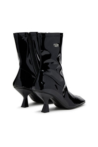 Product Description Slick and modern, these women’s ankle boots in patent PU are soft, flexible and ultra-glossy. Fastening with a side zip, they have square toes and a subtle metal Oval D plaque embellishment. The 7.5cm heel offers a considerable amount of lift, but thanks to its angled, fluted profile, feels extremely comfortable for everyday life. ID: Y03630P2648 Materials & Details Composition: 60%Polyurethane 40%Polyester Side zip 7.5cm heel