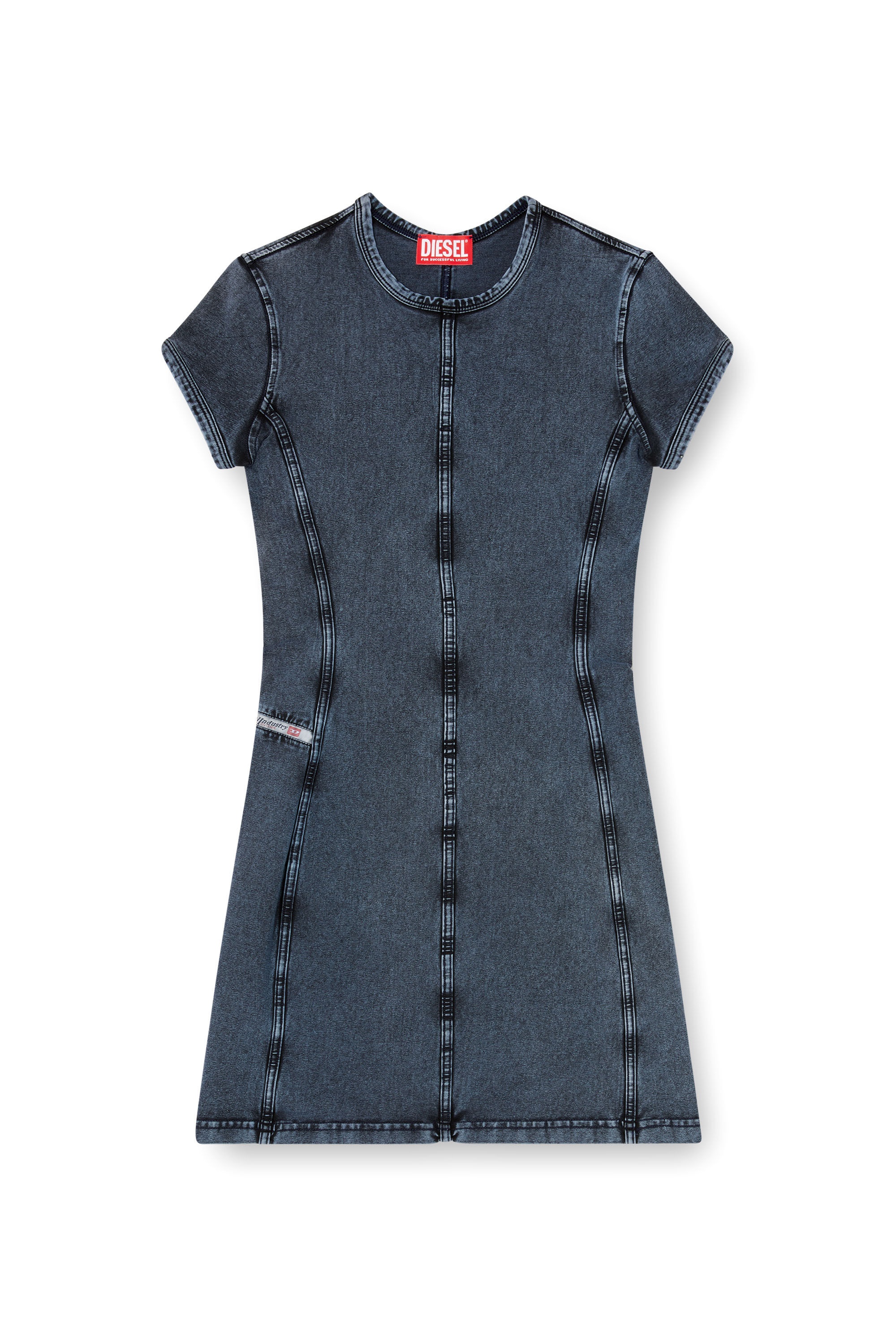 Product Description This slim-fit mini dress is made from stretch jersey, but is dyed and washed to look like faded indigo denim. Vertical panelling sculpts the body, detailed with our iconic fifth-pocket flag on the side. ID: A195170KIBY Size & Fit Model is wearing a size S and is 175 cm / 5'7'' Check the size chart to choose the correct size. Materials & Details Composition: 93%Cotton 7%Elastane-Spandex Slim fit