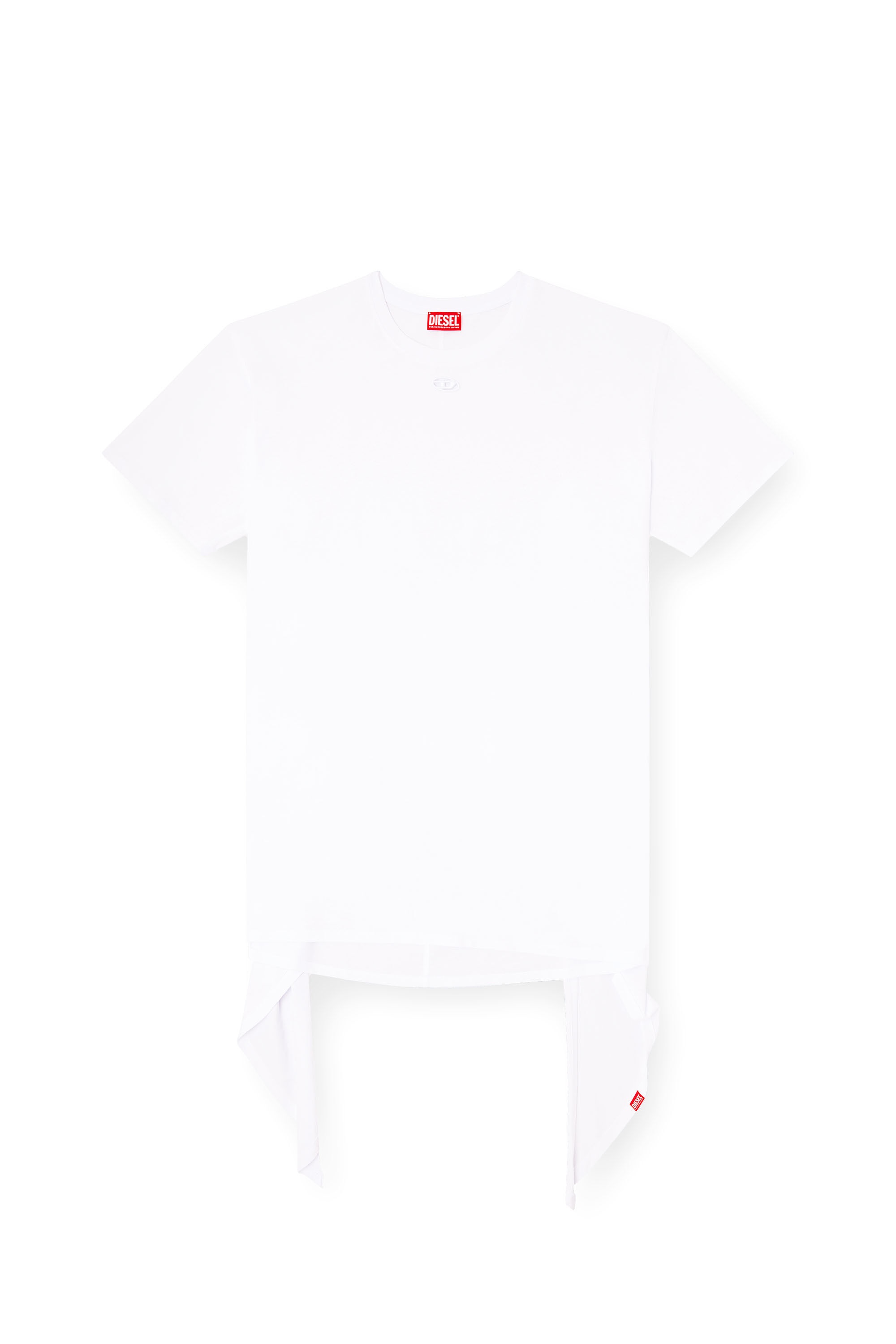 Product Description This women's T-shirt dress is made from organic cotton jersey. Its regular silhouette features dropped sleeves and front overlays that tie bandana-style in a draped effect. An embroidered Oval D cut-out on the front reveals a hint of skin. ID: A192320NIAX Size & Fit Model is wearing a size S and is 175 cm / 5'7'' Check the size chart to choose the correct size. Materials & Details Composition: 100%Cotton, Rib 95%Cotton 5%Elastane-Spandex Regular fit Front ties