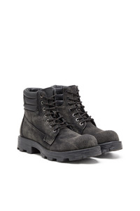 Product Description These women’s ankle boots pull denim off the jeans and reframe it in a rugged combat silhouette. The faded black wash and contrast laces nod to utility, while padded leather collars showcase Diesel’s iconic Oval D. All of it grounded on chunky rubber lug soles built to stomp. ID: Y03841P5237 Materials & Details Composition: 100%Cotton, Contrast 100%Cow Leather Lace-up Padded leather collar Rubber lug sole