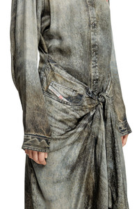 Product Description Women's relaxed shirt dress with asymmetrical wrap front. The fluid viscose fabric — made from half responsibly-sourced and half ECOVERO™ fibres — is printed to look like washed-out black denim, featuring trompe-l'oeil five-pocket detailing. ID: A185770LKCT Size & Fit Model is wearing an IT size 40 and is 175 cm / 5'7'' Check the size chart to choose the correct size. Materials & Details Composition: 100%Viscose-Rayon Relaxed fit Snap button closureWrap front