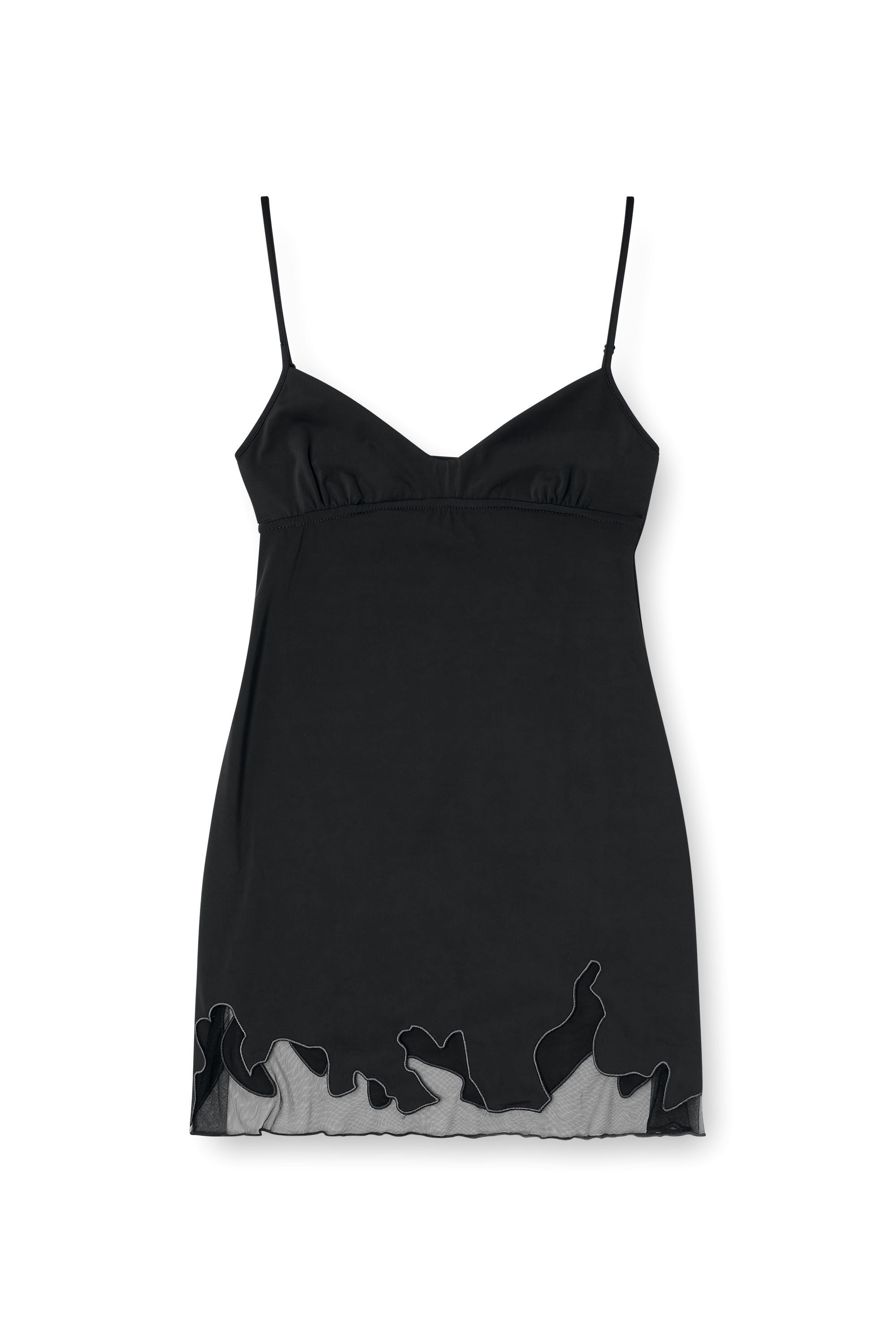 Product Description Featuring spaghetti straps and a gathered bust, this mini dress is cut for a slim fit in black recycled nylon. A see-through tulle inlay creates a squiggly hem, traced with tonal cord embroidery. Hallmarked with a metal Oval D on the back. ID: A196110NKCV Size & Fit Model is wearing a size S and is 175 cm / 5'7'' Check the size chart to choose the correct size. Materials & Details Composition: 77%Polyamide-Nylon 23%Elastane-Spandex, Contrast 100%Polyamide-Nylon Slim fit Adjustable straps