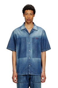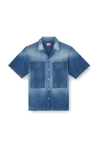 Product Description Men's short-sleeve bowling shirt cut to a regular, boxy fit. Branded metal snap buttons and an embroidered D on the chest complete the style. A tribute to Diesel’s experimental attitude, this medium blue wash undergoes a unique patch-effect treatment to create daring light and dark motifs. Patches are placed in key areas before sanding, stone washing, and spraying are applied, creating a clear-cut contrast once removed. Final touches like distressing and a used, dirty effect enhance its worn-in character. ID: A16957068SN Size & Fit Model is wearing a size L and is 182 cm / 5'10'' Check the size chart to choose the correct size. Materials & Details Composition: 100%Cotton Open collar Snap-button closure