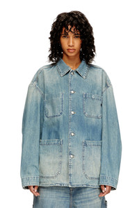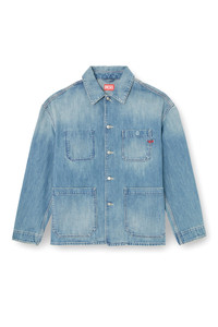 Product Description A workwear inspired piece, this shacket features wide patch pockets with squared corners, branded metal buttons, and reinforced stitching. A red embroidered D completes the style. Utility vibes are a hallmark of Diesel's urban, workwear-inspired aesthetic. Made with a high percentage of regenerative cotton, this light blue wash is crafted from fix denim with a clean, contemporary finish. ID: A19260068SK Size & Fit Model is wearing a size L and is 188 cm / 6'2". Model is wearing a size S and is 177 cm / 5'9". Materials & Details Composition: 100%Cotton Metal button closure 2 chest pockets, one with hidden buttonTwo patch pocketsButtoned cuffsUnlined