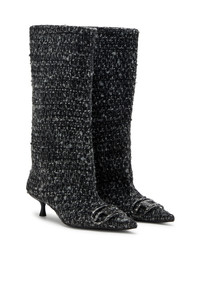 Product Description These women’s knee boots are an exclusive FW25 Runway Show style made in Italy. Rendered in quintessentially chic boucle fabric, they feature a super-wide shaft, pointed toes and 4cm kitten heels. The Oval D hardware – an expression of Diesel’s identity – is perfectly camouflaged in with a matching finish: a seamless juxtaposition of reality and illusion. ID: Y03799P8662 Materials & Details Composition: 38%Polyester 36%Acrylic 14%Cotton 11%Wool 1%Other Fibres Fall Winter 2025 Runway Show 4cm kitten heel Made in Italy