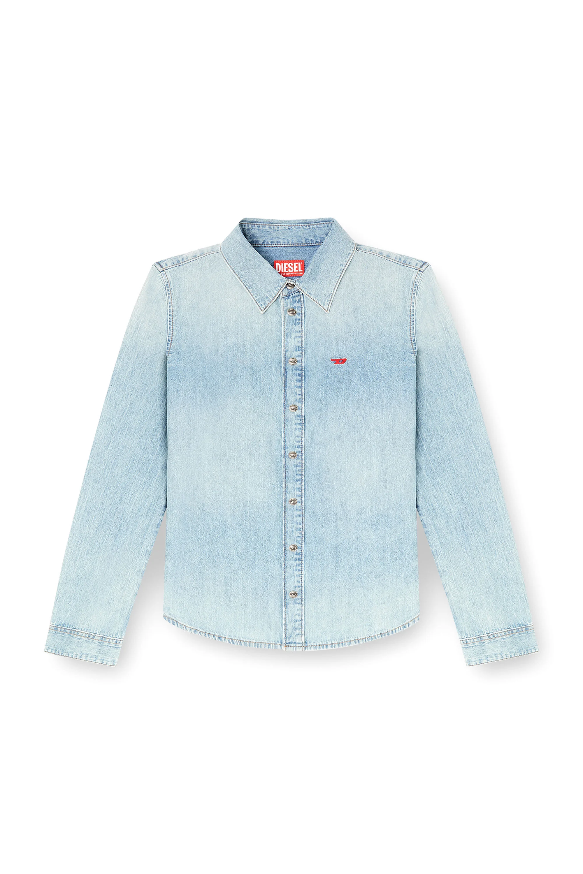 Product Description Denim shirt made from 100% organic cotton with a light blue, nuanced wash. It features a classic long-sleeve design with button closure, while the embroidered logo on the chest adds a distinctive element. ID: A158080IRAB Size & Fit Model is wearing a size S and is 175 cm / 5'7'' Check the size chart to choose the correct size. Materials & Details Composition: 100%Cotton Front snap-button closure Double-needle stitching Buttoned cuffs