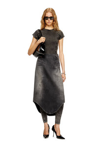 Product Description Midi cotton skirt with a unique, textured fabric for a stunning shadow effect. It features a regular fit and a comfortable elastic waistband for a relaxed wear. The practical applied front pockets and iconic logo complete the design. This black wash reinterprets Diesel's heritage coating with a subtle, contemporary twist. The fix denim base is made from a fluid Lyocell and Modal blend, stone washed and treated with bleach effects for a marbled finish. A special transparent film is pressed on the fabric, creating an extremely refined, soft coated finish. ID: A190750CEBC Size & Fit Model is wearing a size 26 and is 175 cm / 5'7'' Check the size chart to choose the correct size. Materials & Details Composition: 50%Cotton 40%Lyocell 10%Modal, Coating 100%Polyurethane Regular Fit Shadow wash effect 5-pocket design Midi length