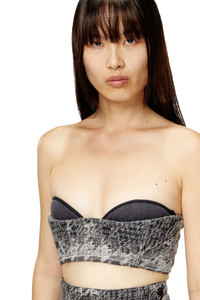 Product Description This bandeau top embodies a central theme of the Fall Winter 2025 Runway Show: sartorial silhouettes reimagined through extreme proportions and artisanal textures. The internal bralette is intentionally visible for a subversive twist. Distressed in Italy, this black fix denim features a distinctive jacquard weave with a double pattern: the houndstooth top layer is burned using a precise laser process to reveal the Prince of Wales motif underneath. Stonewashed with enzymes, this unique worn-in wash is part of the Runway line up, channelling an unconventional haute-couture attitude. ID: A215120CEBN Size & Fit Model is wearing a size S and is 175 cm / 5'7'' Check the size chart to choose the correct size. Materials & Details Composition: 100%Cotton Fall Winter 2025 Runway Show Back zip closure Internal bralette with hook and eye closure