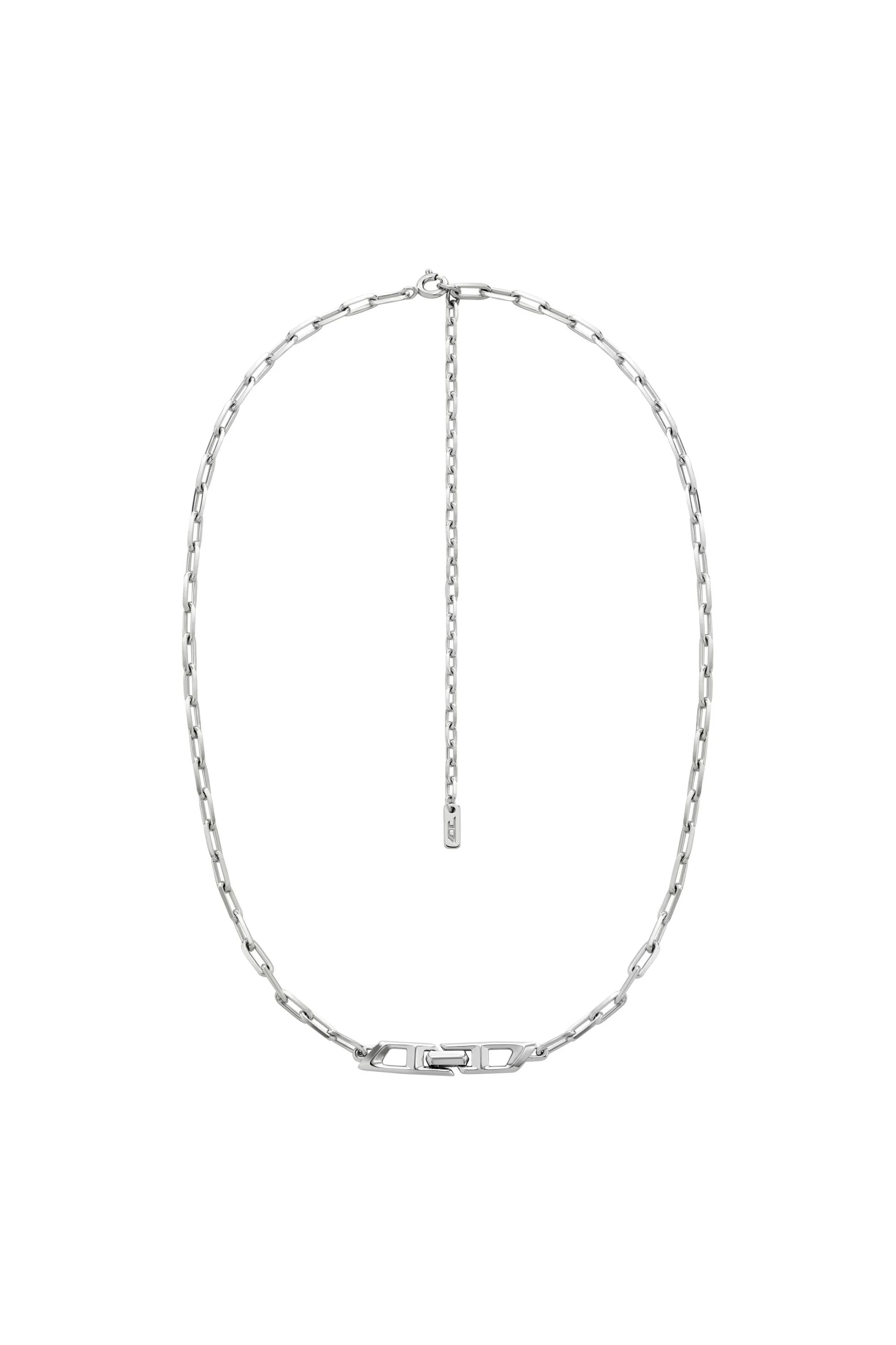 Product Description Diesel's sterling silver chain necklace features the iconic D logo with a faceted design. Made from high-quality sterling silver and features a spring ring closure for secure wear. Its sleek design makes it a timeless accessory for any occasion. ID: DL136400DJW Materials & Details Composition: Silver Material: Sterling Silver Closure: Spring Ring Finish: Polished Measurements: L 400MM + 100MM x W 32.50MM x H 5.60MM