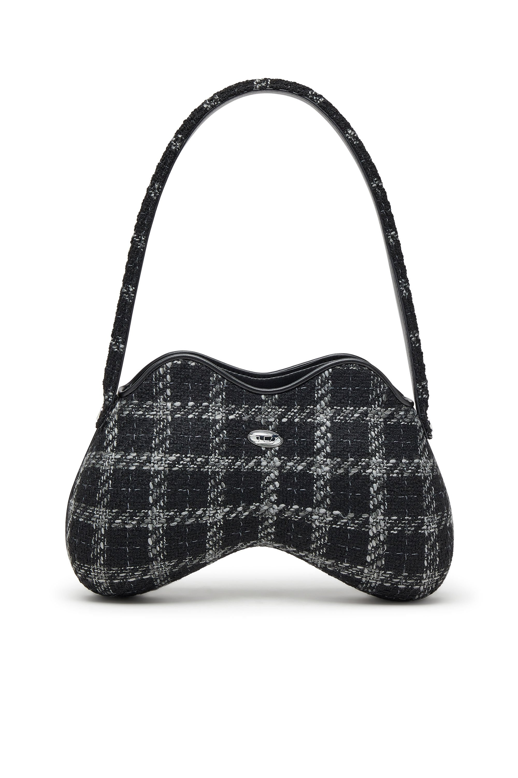 Product Description A three-dimensional take on the coveted Play, this iteration of the iconic gaming controller-inspired bag is cheekily dubbed the ‘Double D’. An exclusive FW25 Runway show accessory, it has a fabric-covered hard-shell design that clashes an anatomically-suggestive, buxom shape with a classic black-and-white houndstooth motif synonymous with couture. This bag is ultra-comfortable to carry under the arm and has a fixed shoulder strap. A metal Oval D rivet subtly embellishes the front. ID: X10327P8629 Materials & Details Composition: T1 49% PC 23% PU 17% PL 8% WO 2% CO 1% XAF Fall Winter 2025 Runway Show Fixed strap Zip closure Internal zip pocket Logo-jacquard satin lining