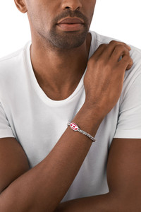 Product Description Diesel's chain bracelet features red enamel and stainless steel and a lobster clasp closure. Composition: Steel Material: Stainless Steel Closure: Lobster Clasp Finish: Polished Measurements: L 165MM+25MM x W 27MM x H 14.5MM ID: DX144500DJW
