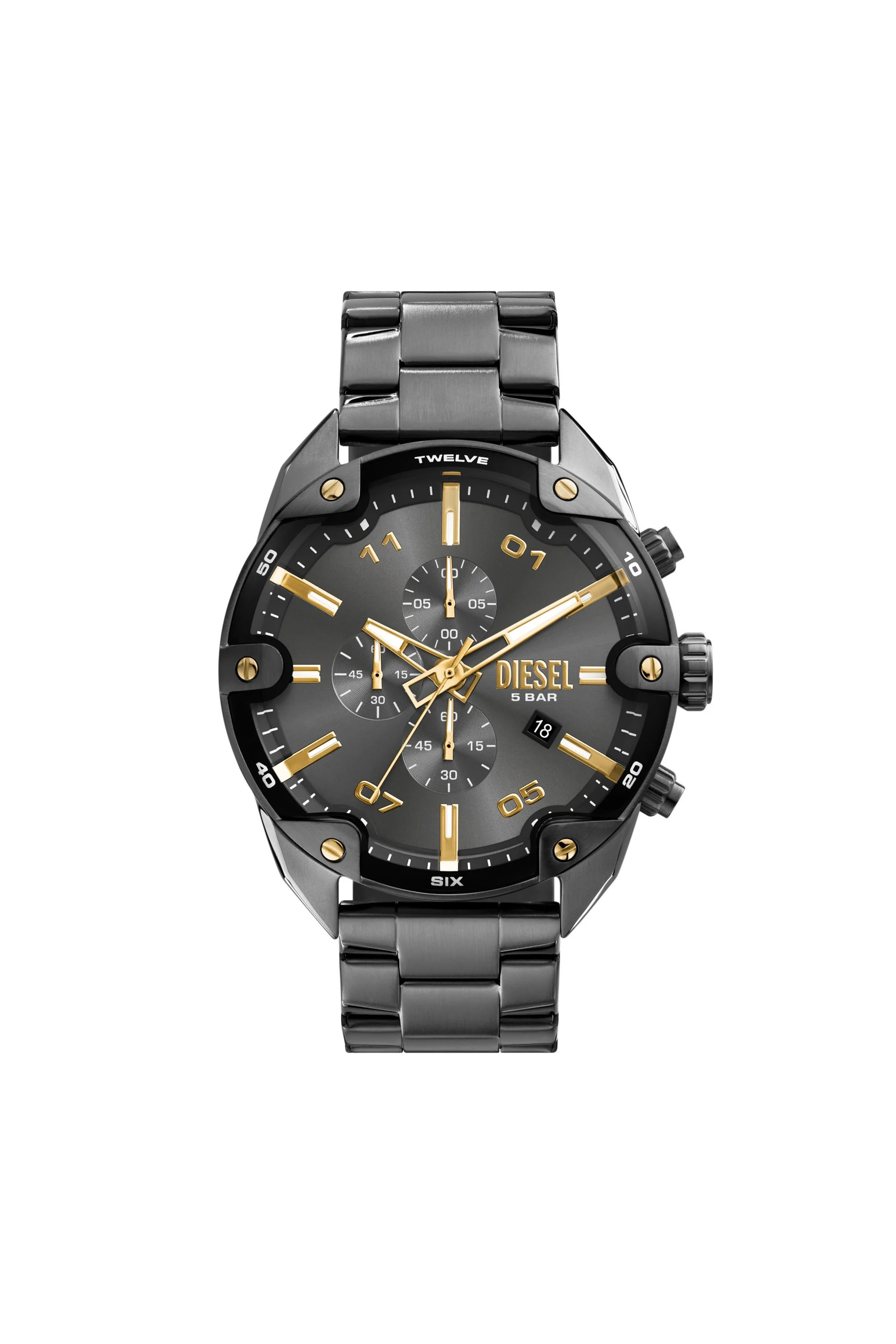 Product Description WARRANTYDiesel's 49mm Spiked watch features a gray sunray dial, chronograph movement and gunmetal stainless steel bracelet. ID: DZ466900QQQ Materials & Details Composition: Steel Case Size: 49x57 Case Thickness: 13.1MM Water Resistance: 5 ATM Case Material: STAINLESS STEEL Case Finish: COMBO Attachment Material: STAINLESS STEEL Attachment Color: Gunmetal Closure/Adjustability: Bracelet Deployant Dial Color: Gray Movement: Quartz/Chrono