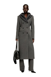 Product Description Tailoring, subverted with fluid ease. This women’s long coat is cut to a striking hourglass silhouette and topped with a cowl hood – rib-knitted from virgin wool, the headpiece adds a dramatic drape as it morphs into lapels. Rubber-touch faux-horn buttons fasten the double-breasted front, while a subtle metal Oval D plaque accents the back. ID: A200040BMCM Size & Fit Model is wearing an IT size 40 and is 175 cm / 5'7'' Check the size chart to choose the correct size. Materials & Details Composition: Outer 66%Polyester 28%Viscose-Rayon 6%Elastane-Spandex, Inner 100%Polyester, Contrast 100%Virgin Wool Regular fit Double-breasted button closure Ribbed-knit cowl hood, jetted pockets and back vent Logo jacquard lining