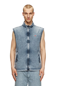 Product Description This men's sleeveless jacket is built from certified recycled nylon taslan, expertly treated for an acid-washed look. Featuring a high neck and zip closure, the vest is detailed with a silicon D patch on the left sleeve and branded metal zip pullers. Drawstrings at the hem allow you to adjust the fit. ID: A195180PLBH Size & Fit Model is wearing an IT size 48 and is 188 cm / 6'2" Check the size chart to choose the correct size. Materials & Details Composition: 100%Polyamide-Nylon Zip closure Drawstring hemSide pocketsLined