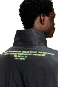 Product Description Men's Remaster jacket made from lightweight technical fabric, featuring a high neck, elasticated trims and a drawstring at the hem. Through the Remaster capsule, Diesel and NTS spotlight DJs who have shaped global music culture, fusing fashion with personal storytelling. Each DJ selects a garment to imprint with lyrics or a meaningful quote, merging fashion with the underground club scene.Embellished on the back with a phrase chosen by Wes Baggaley: "The gateway to the good stuff: Detroit techno, Chicago house. A dark and subversive mind-bending experience." ID: A197170LKCN Size & Fit Male model is wearing an IT size 50 and female model is wearing an IT size 50. Check the size chart to choose the correct size. Materials & Details Composition: 100%Polyester Remaster capsule collection Zip closure Elasticated cuffs and hem Drawstring hem Unlined
