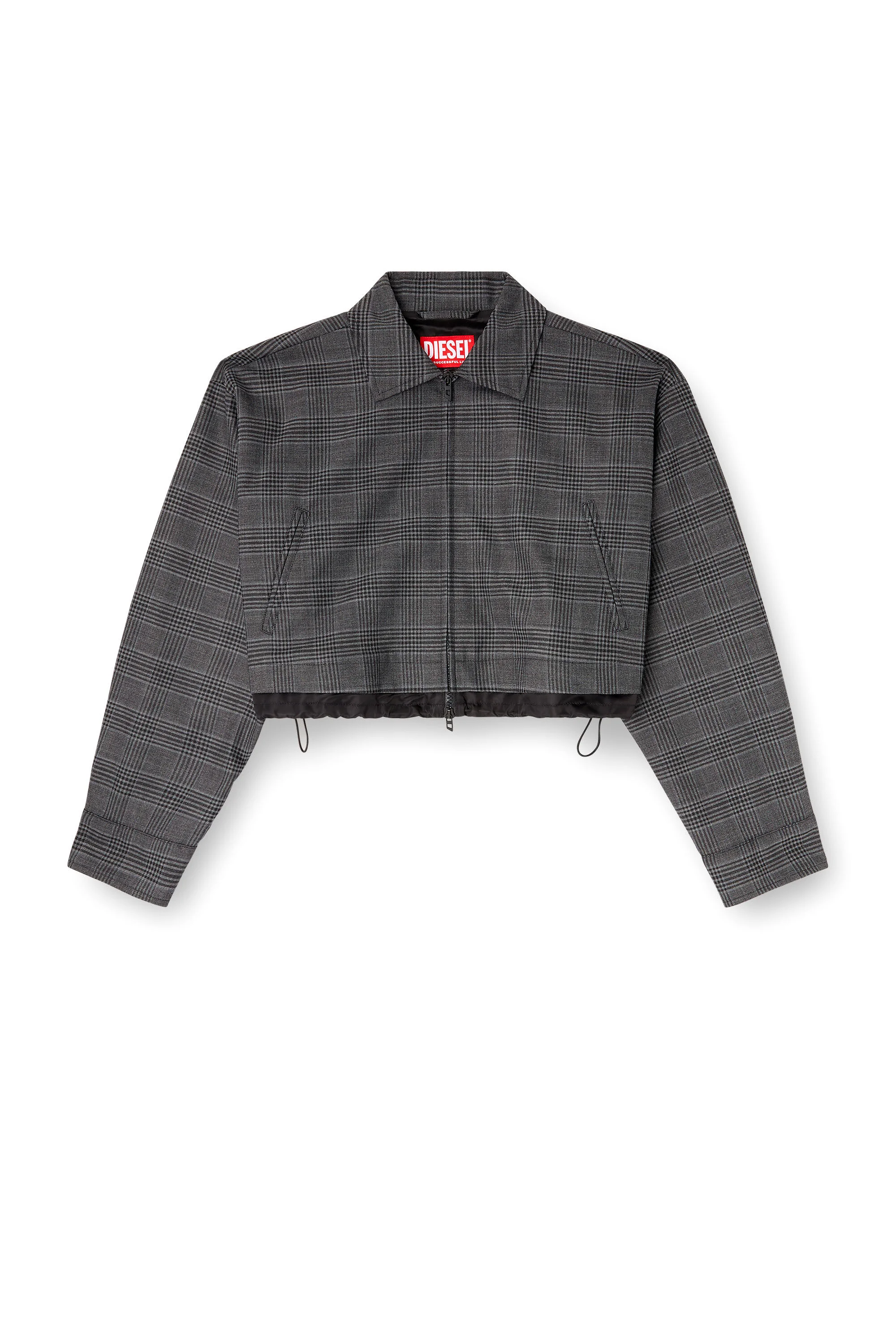 Product Description Subverting tradition and playing with archetypes stand as pillars of Diesel's design language. The notions come to life in this women’s jacket that juxtaposes a classic tailoring fabric with a sporty silhouette and technical elements. A cropped, boxy riff on a coach style, it’s made from a wool blend woven with Prince of Wales checks and has a drawstring hem in technical nylon satin. ID: A193310DEBS Size & Fit Model is wearing an IT size 40 and is 175 cm / 5'7'' Check the size chart to choose the correct size. Materials & Details Composition: 54%Polyester 44%Virgin Wool 2%Elastane-Spandex, Contrast 100%Polyamide-Nylon Cropped, boxy fit Welt pockets and snap-button cuffs Drawstring hem Two-way zip closure Lined