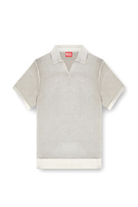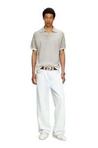 Product Description Men's knit polo in smooth gassed organic cotton. Featuring a relaxed open collar and short sleeves, this sweater has been specially printed on the inside, creating unique, irregular colouring on the outside. The effect of this technique is particularly visible at the ribbed trims, where the tone is decidedly lighter. ID: A181270BEAR Size & Fit Model is wearing a size L and is 182 cm / 5'10'' Check the size chart to choose the correct size. Materials & Details Composition: 100%Cotton Open polo neckline Short sleeves Ribbed trims