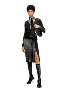 Product Description This black midi skirt is knitted from lower-impact flax fibres. Featuring a wrap detail tying at the hip and a thigh-high slit, it's been dyed to leave fading along the ribbing for a worn look. An embroidered Oval D cut-out shows some skin. ID: A188650BJBR Size & Fit Model is wearing a size S and is 175 cm / 5'7'' Check the size chart to choose the correct size. Materials & Details Composition: 100%Flax Waist tie