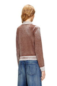 Product Description Women's cardigan with a classic collar and regular fit. Knitted from cotton, this buttoned style has been specially printed on the inside, resulting in a softened, uneven colour. The effect of this technique is particularly visible on the ribbed trims, where the tone is decidedly lighter. A micro-sized embroidered logo accents the chest. ID: A218340BKCB Size & Fit Model is wearing a size S and is 175 cm / 5'7'' Check the size chart to choose the correct size. Materials & Details Composition: 100%Cotton Regular fit Classic collar Ribbed trims Button closure